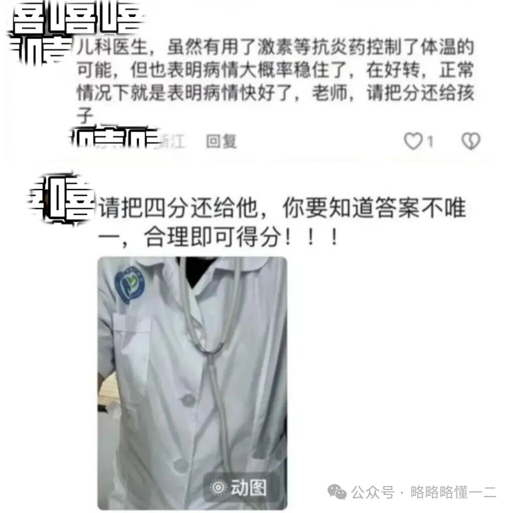 还有医学生认为孩子的答案没有错,答案并不是唯一的,合理就能够给分。