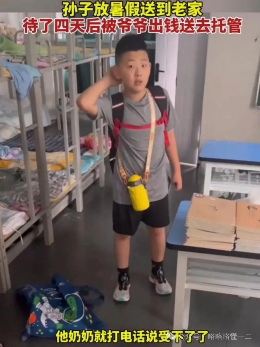 实在是没有办法了,爷爷说自己出钱给孩子送孩子去托管班,孩子爸爸一想距离开学的时间太长了,送孩子去托管班也行,考虑两点一是没时间,二是这孩子属实不服从管教。