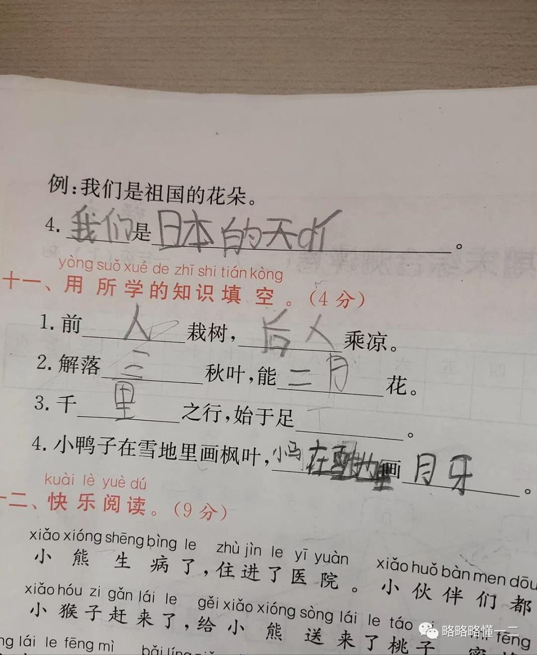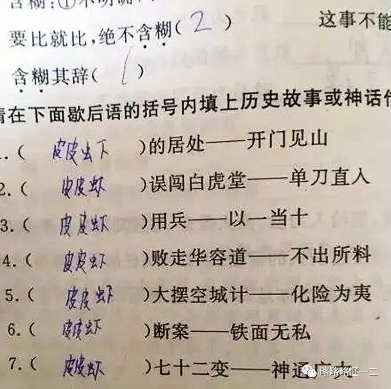 这不同的填空题同一个答案,不同的小学生同样的敷衍。