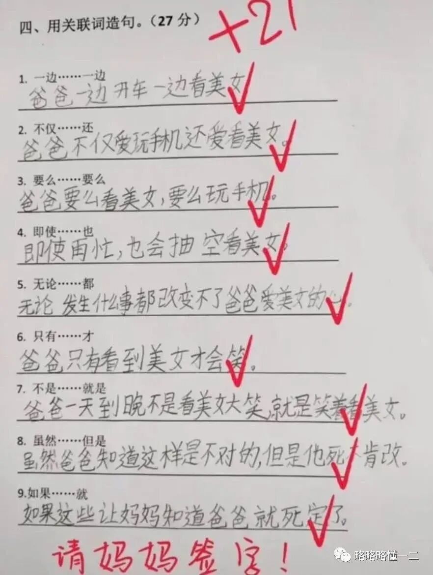 有一说一,老师还是懂教学机智的,请你妈妈来签字。
