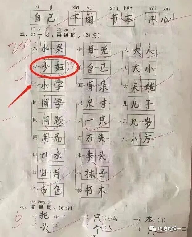 其他的都做的挺好的,可是,你这个少字的组词就有点让人迷惑了。