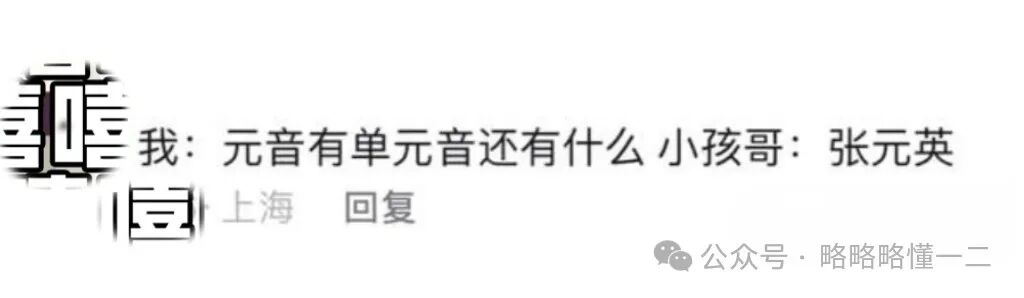 给小学生辅导拼音,问他元音有单元音还有什么?小学生回答说还有张元英!