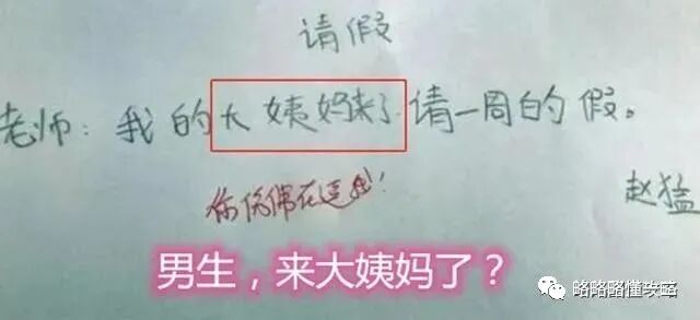 可你见过小男生亲戚来了的吗?不知道是男生搞不清楚状态,还是家里的“大姨妈”真来了,还是请一周的假?