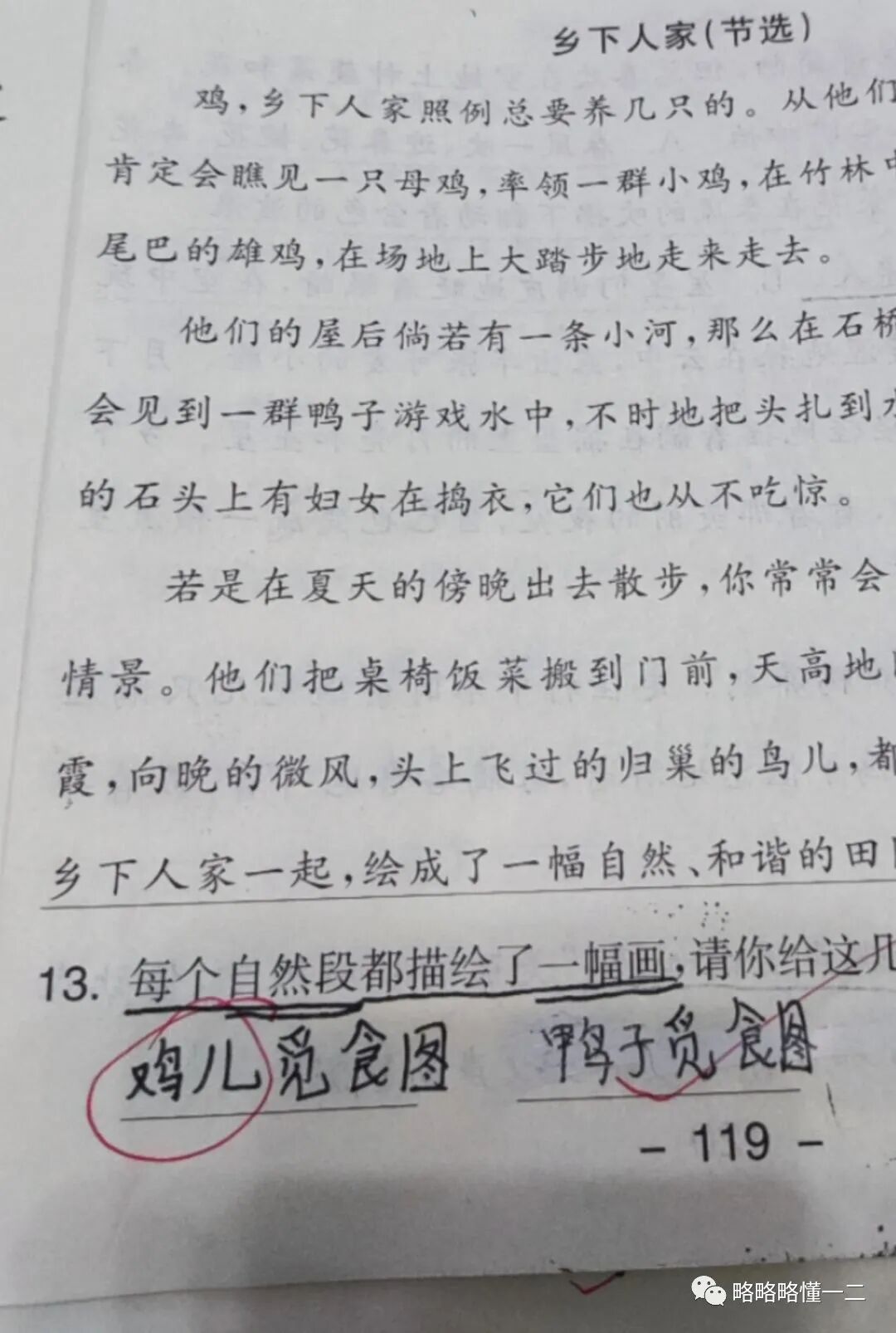 你看看这是什么虎狼之辞,虽然孩子确实是在认真的完成作业,不过咱就是说要不咱们换一个词语比如小鸡觅食图,鸡仔觅食图。