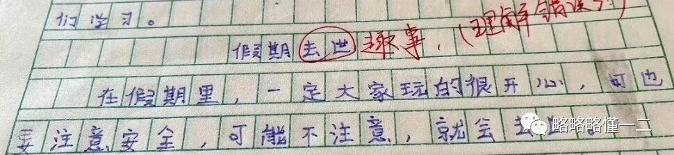 这或许不是孩子故意这么做的,因为他的内容确实是在写“假期去世”。