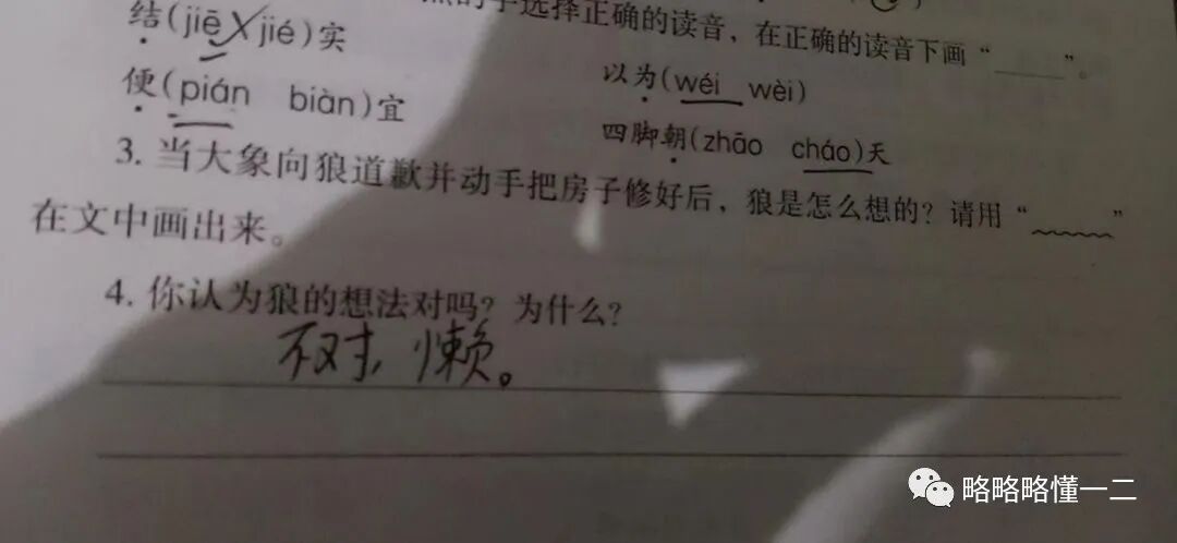 不过老师问号三连确实是有一些无奈在其中了,粗心的孩子与有趣的老师,这一个作业显得趣味盎然了。