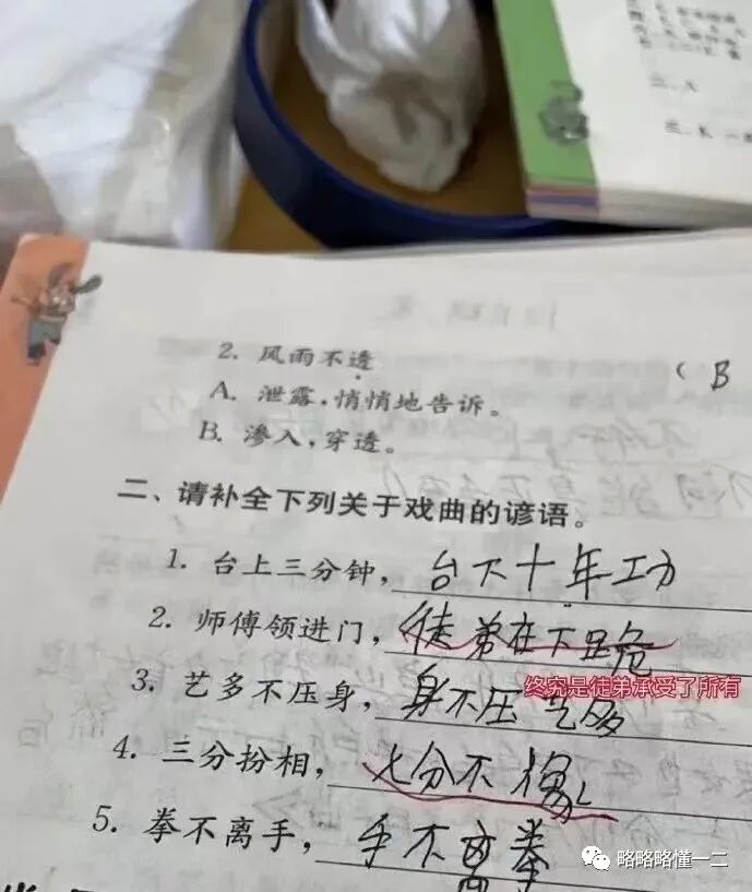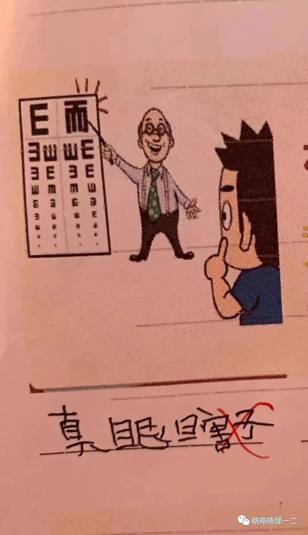 是让你猜成语不是让你看图说话呀,老师估计看到这个答案当时血压一定会很高吧。