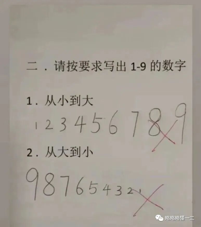 陡然一看人家也没有写错啊,不管是从字形上还是从数字的大小上,人家都是按照要求写的,你为什么要给人家打一个错误呢?