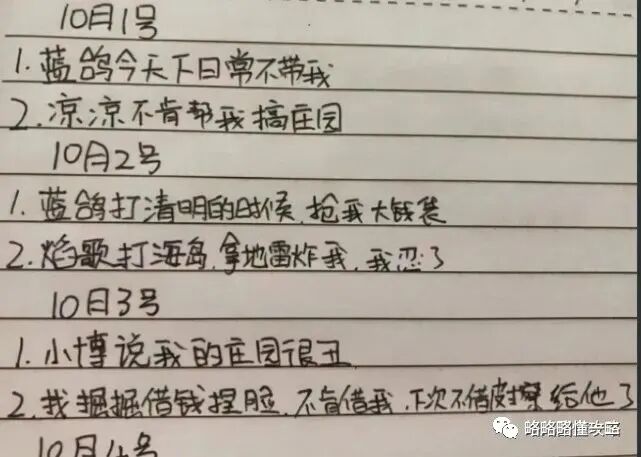 希望这位小学生能给自己的日记本换个名字,叫“记仇本”多拉仇恨呀。