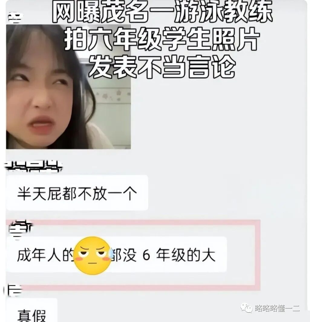 由于部分言论确实过于粗鄙,也就不方便显示了,大家懂得都懂,已经做了处理了,说什么六年级的孩子营养太好了,已经引起不适了,而后面更是对学生的称呼太猥琐了。