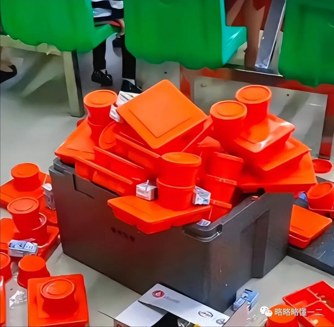 学生统一吃盒饭,自然也是塑料盒,餐盘也不用洗,多方便啊。