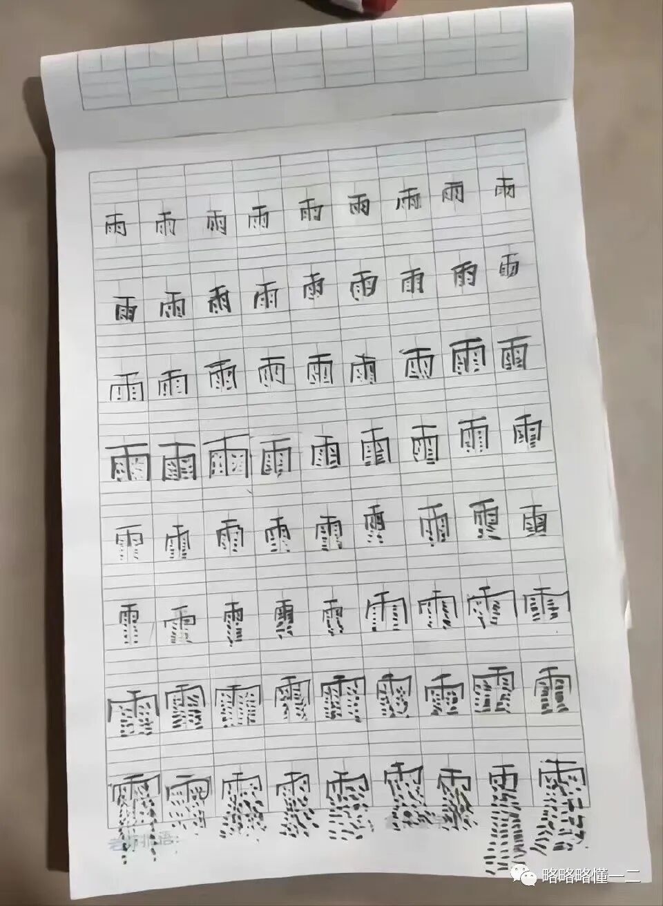 这也从一个侧面表示出了小学生的耐心逐渐丢失,写字的时候十分急躁,这一点从雨这个字的点数我们就可以看出一二。