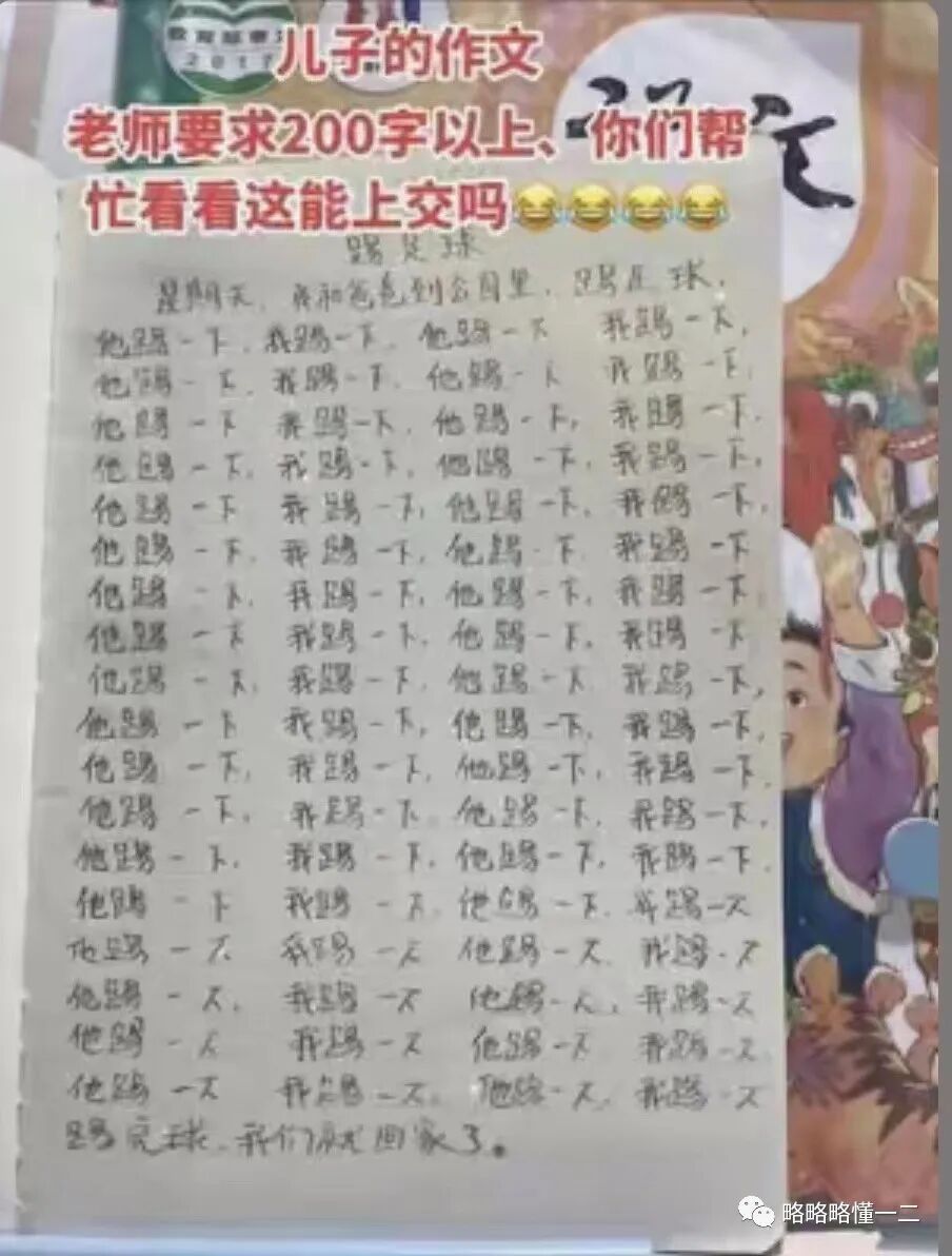而小学生的作业捷径想必大家都比较清楚了,无非是选择题全乱猜,写作题就写最简单的文字,甚至是重复的文字一遍又一遍的写。