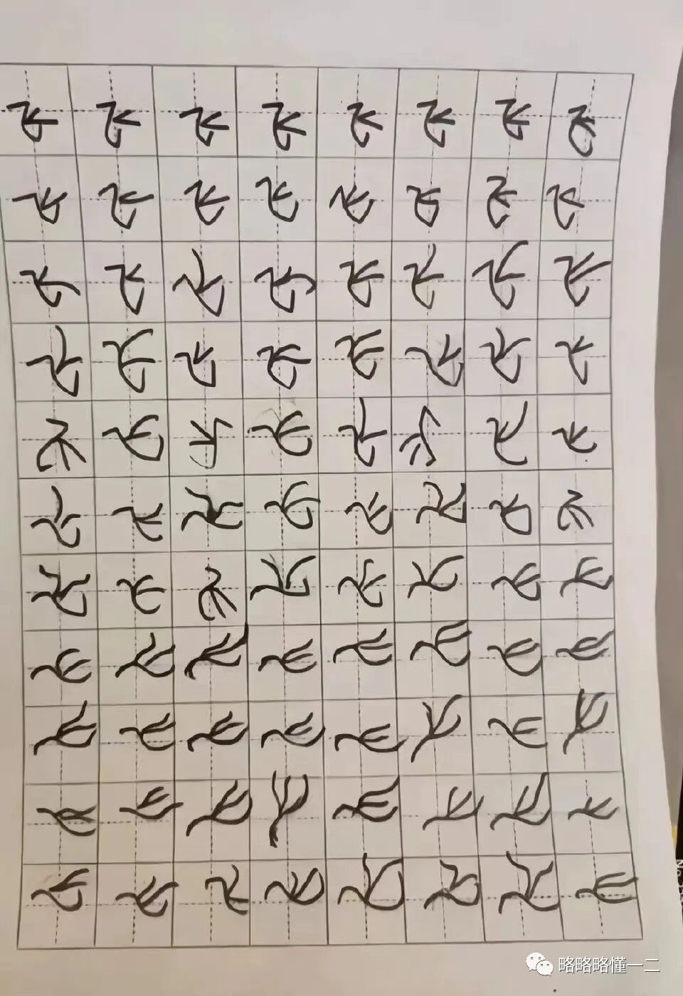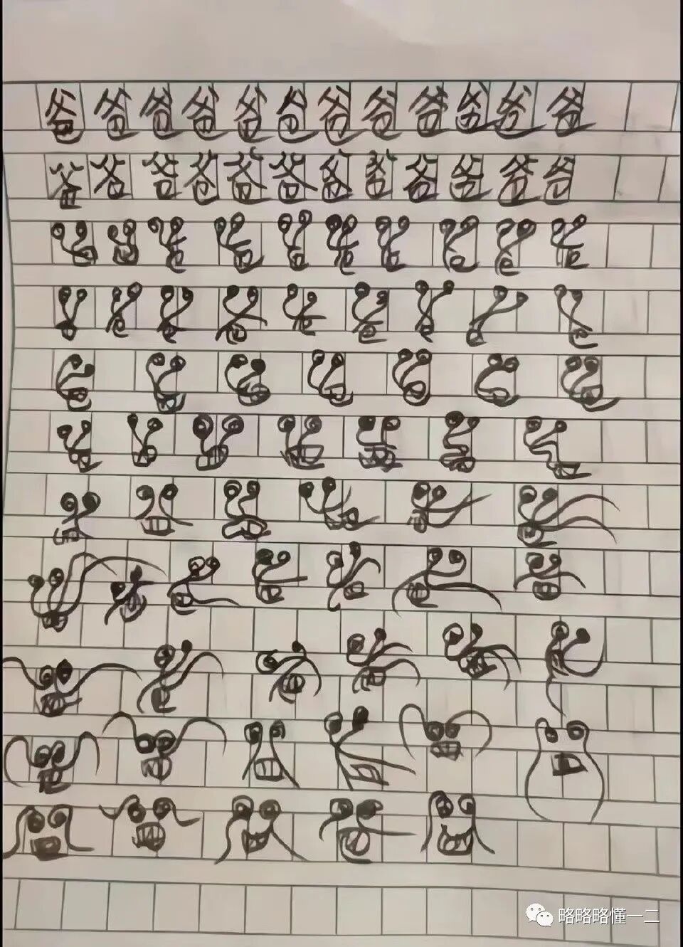 合着我们是文明在进步,你的写字水平在倒退不是?最后那一只燕子真的是绝绝子了,既有形又有意,就是老师会有气。