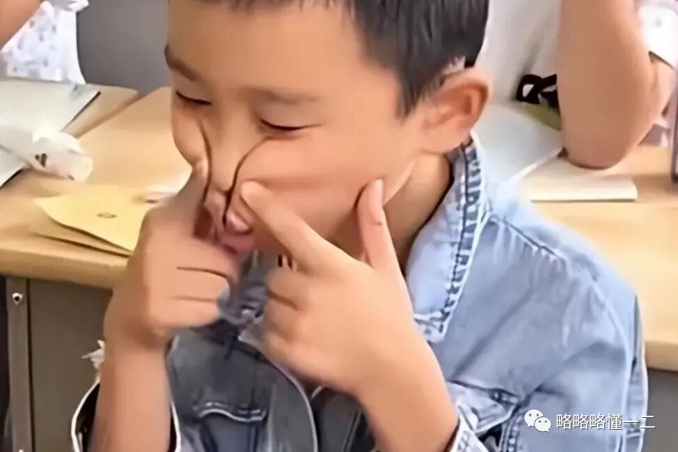 该说不说,眼保健操做得挺好,就是有一些费“脸”,能看出来他真的很努力在做眼保健操,脸都被他给弄变形了。