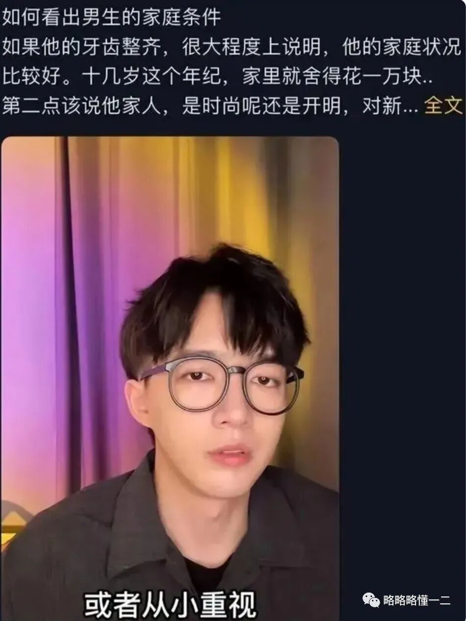 先引起讨论的是大学生情侣相互试探询问家境,互相询问童年是否有矫正牙齿等经历,以半开玩笑的形式猜测家境,最后总结出来的结论是这样的。