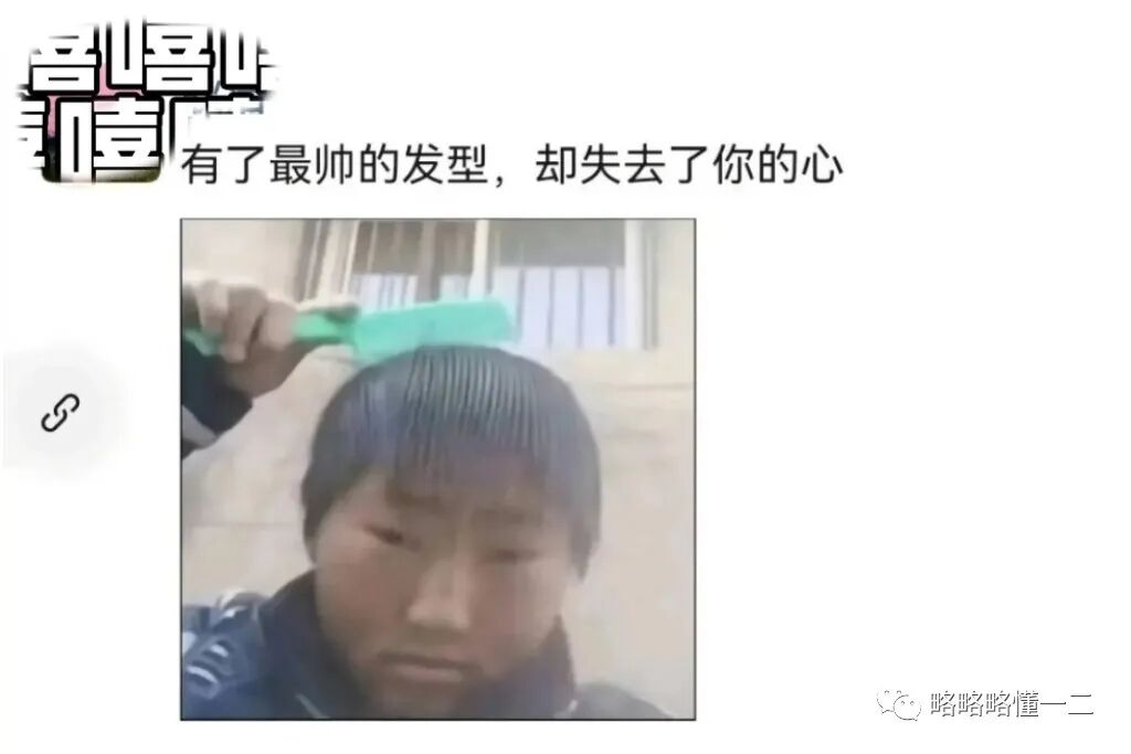 还有更让人觉得伤感的,小学生直接化身为当代“情圣”,自己设计了一个认为最帅的发型,然后配文说:“有了最帅的发型,却失去了你的心”,这个“最帅的发型”能挽留心上人吗?等他成年人就有答案了!
