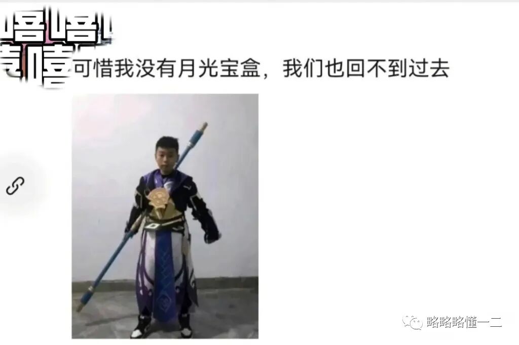 小学生在cos的时候也能想到自己的“爱情之路”,这回配的文案更加伤感了:“可惜我没有月光宝盒,我们也回不到过去”。