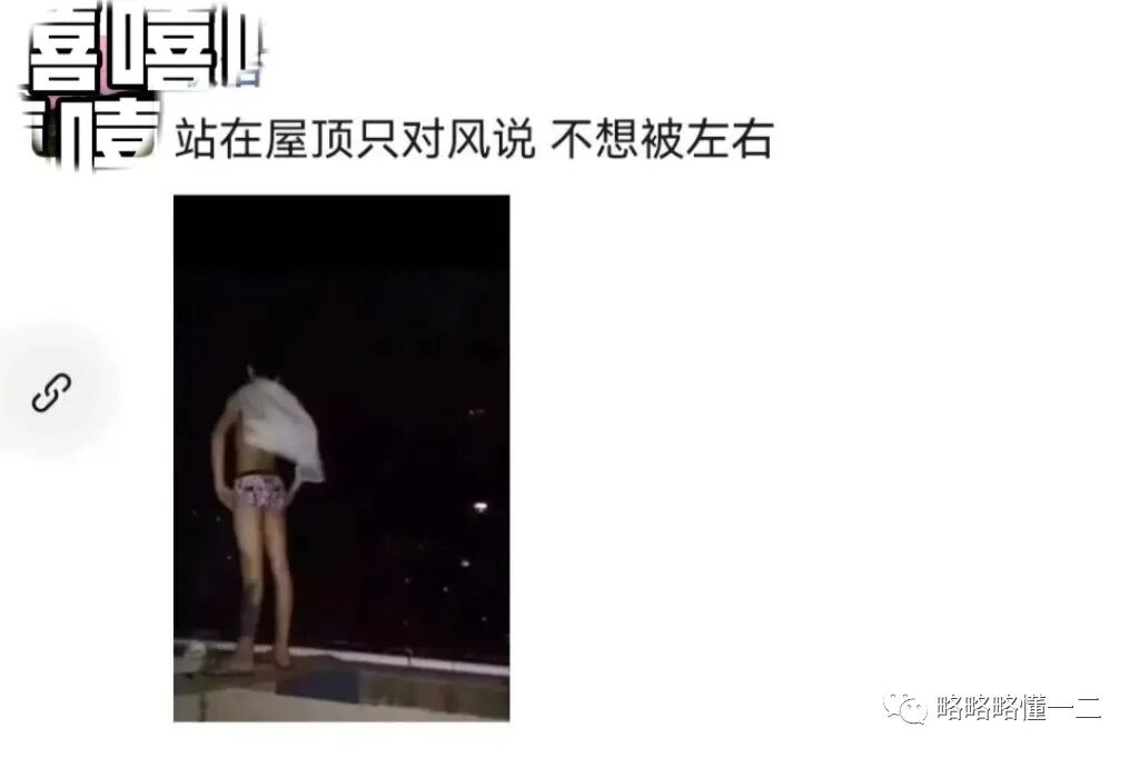 我们先来看看这名小学生为情所困的朋友圈,第一条朋友圈写的是:站在屋顶只对风说不想左右,最绝的是这名小学生只穿了内裤,这多少以后看起来有些“社死”,他不要面子的吗?