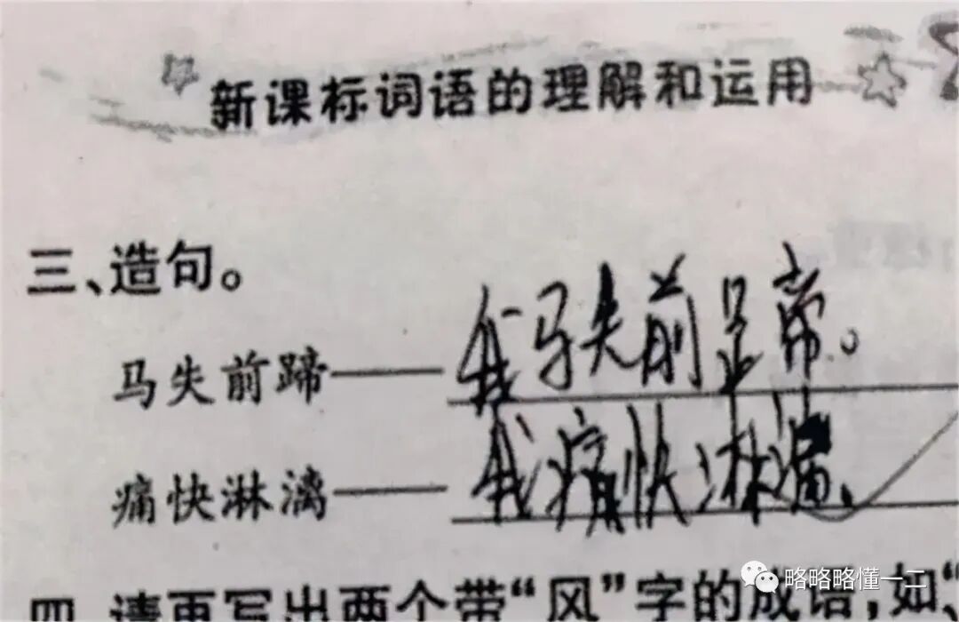 在语文作业中,造句又是必须的。“惜字如金”的人才就出现了!