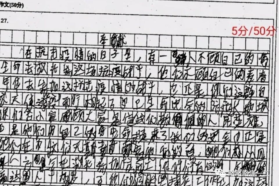 如果不看作文题目的话,略略连这名小学生写的作文题目都看不懂,0分卷无疑了。
