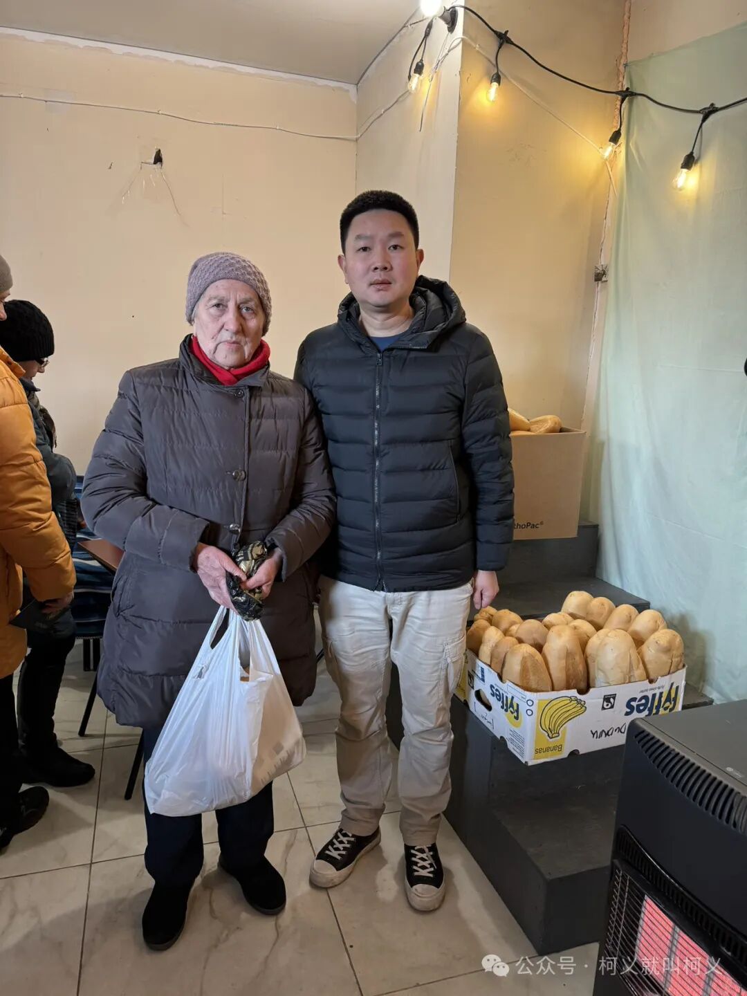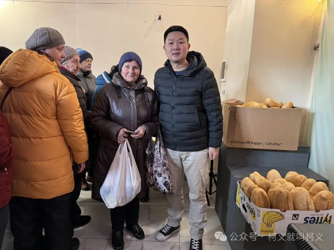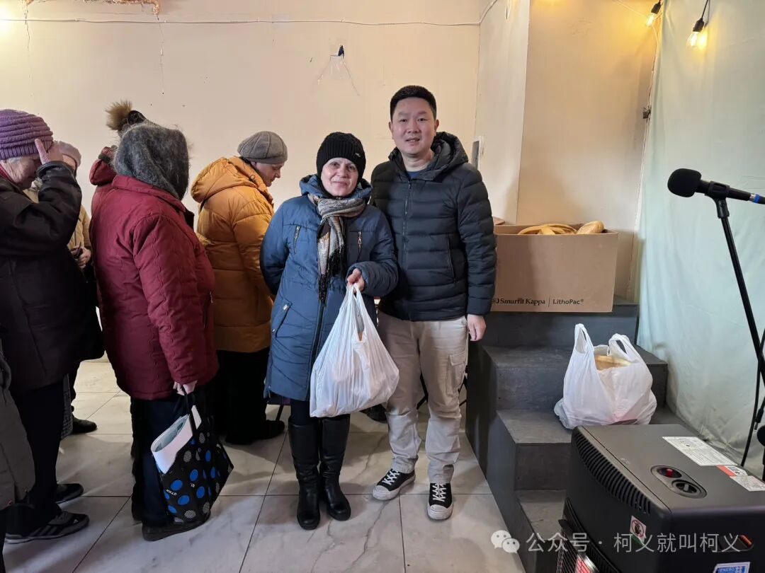 我们的车在1点左右停在了一个城镇的市中心,我下车抬头一看二楼玻璃窗户全都被炸碎了,上面还飘着黑色的塑料布,一楼竟然还有很多老人等着我们,他们已经坐好了,Alex数了一下坐下来的老人大概42人,我们准备了差不多40-50份的食物袋,是王小靠老师,蔡先生,先亮先生,和邹先生一起购买的,在发放食物之前这个安置点的负责人有向大家介绍我和路老师的情况,告诉大家我们是从中国过来的,我也是有了一个简短的分享机会,告诉他们在中国有很多善良的人,他们分辨是非,他们反对战争,他们关心乌克兰的儿童和老人,虽然他们来不了乌克兰,但是通过我把大家的祝福带到了这里,也许对他们来说可能他们之前没有机会见到真正的中国人,也不了解中国,但是今天他们有机会知道并看到有中国人在帮助他们,他们一定会很明白好人在哪里都会有的,爱心和祝福是没有国界的。