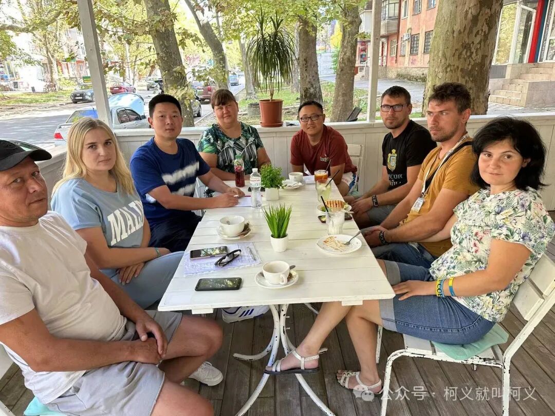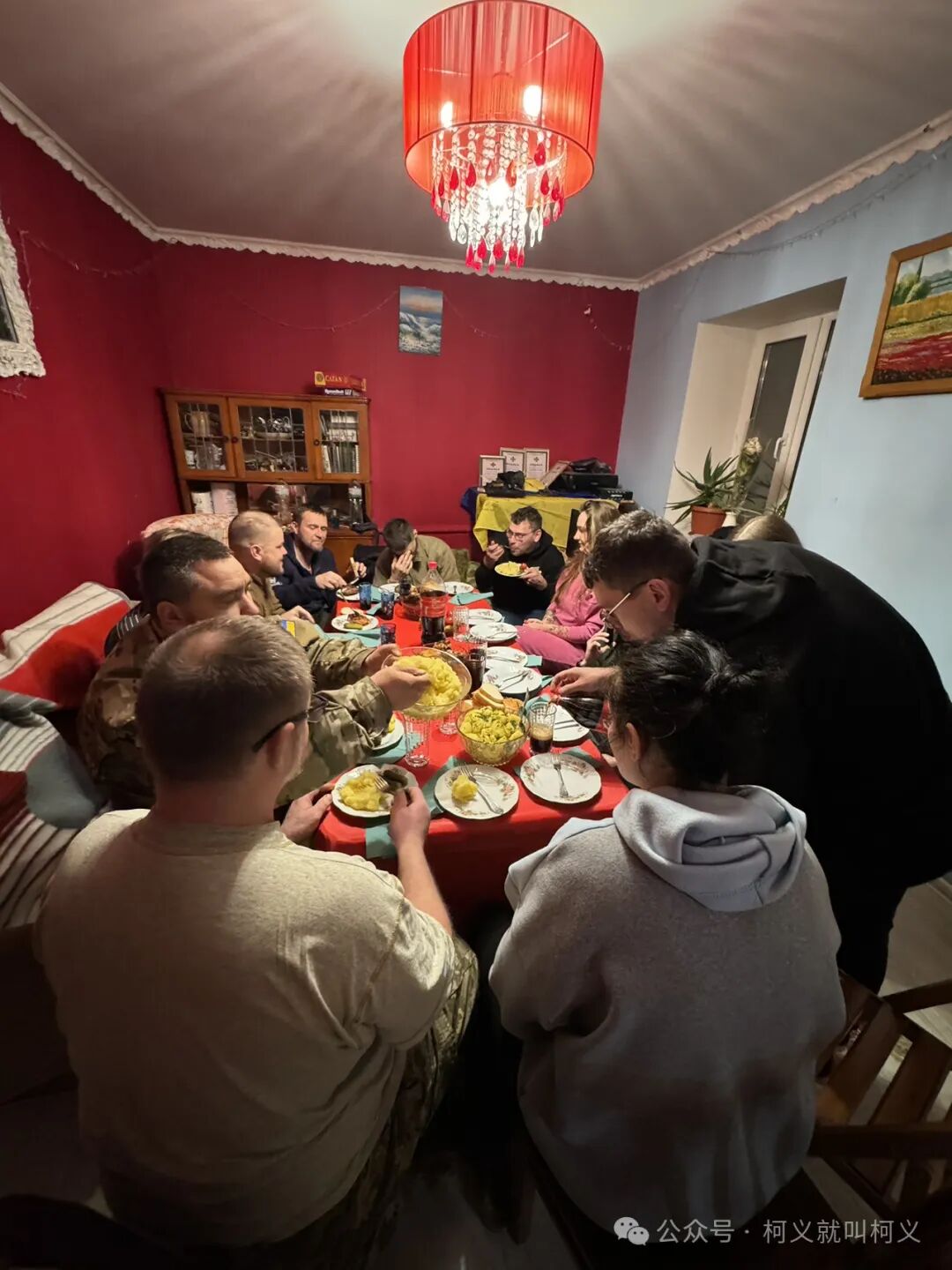 在乌克兰有时候我会恍惚以为在国内,因为他们也喜欢扎堆,喜欢一起吃饭一起喝茶,这样文化习惯对我来说特别好,因为特别有人间烟火气息有家的温暖感,他们有好几个是从其它城市过来的,能够在异地和大家聚在一起也是缘分,我很喜欢马克西姆和玛丽亚这种大方和淳朴,可以让大家聚在一起彼此分享快乐,吃饭的时候我特意拍了一张照片,可能因为我是外国人大家没有说我,因为在战争期间尤其是在赫尔松战区拍照片很危险分,他们又是军人拍照片对他们来说特别危险,图中的那个小哥直接把他的别过去了。晚饭结束后我还特意和他说没有把你拍进去,根本就看不到你,他还不好意思,有些可惜没有和他多聊一下,我挺好奇他的经历的,因为他不是赫尔松人是从其它州来到赫尔松的。