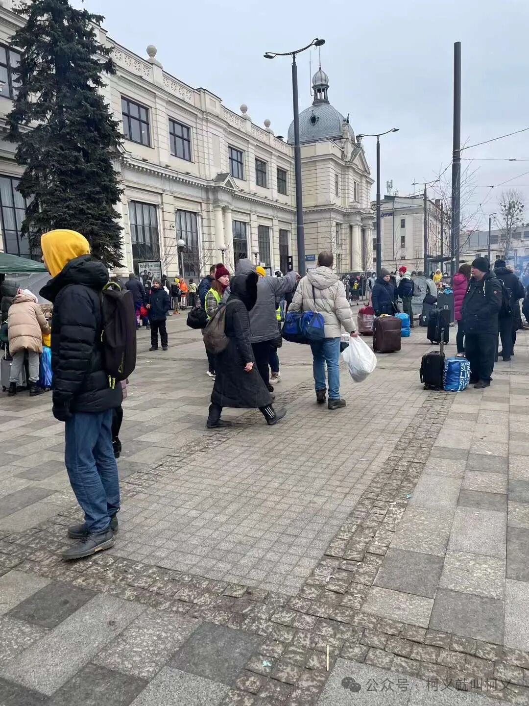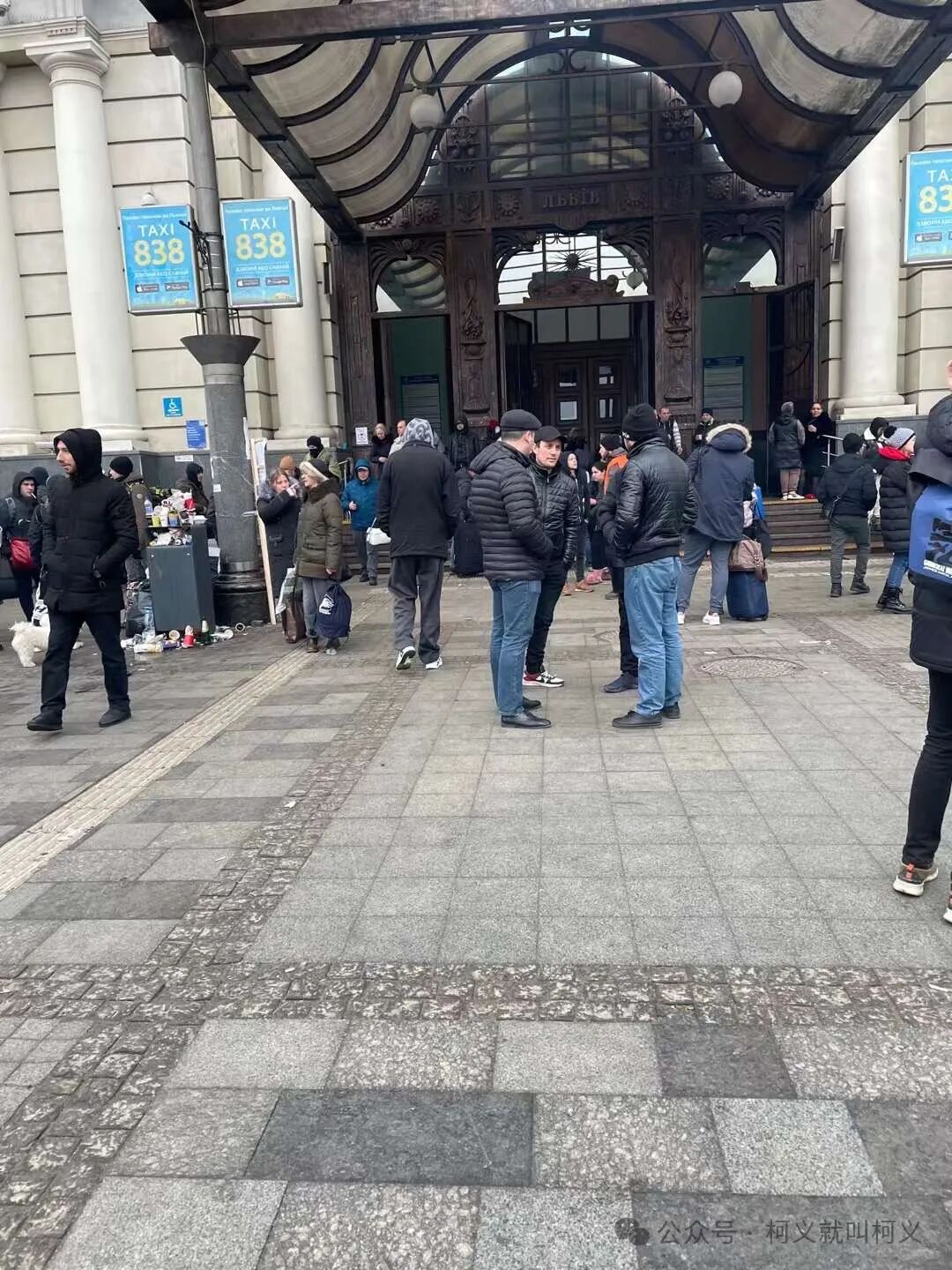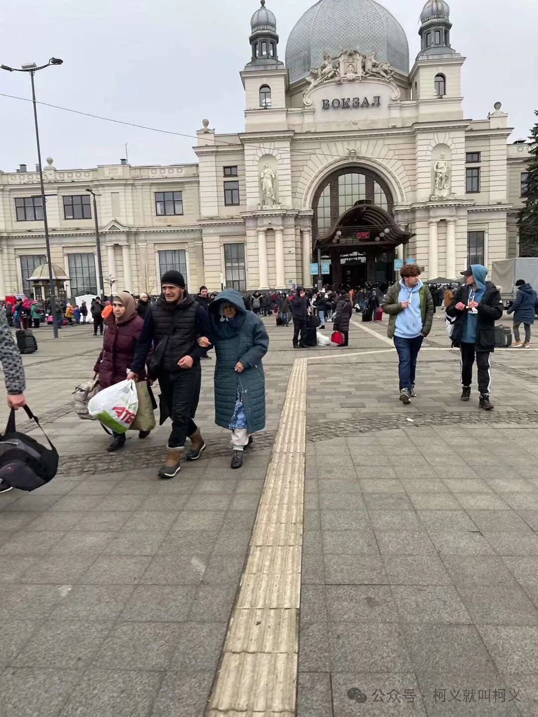 3月2日早上6点天没有亮房东来敲门,Roman过来告诉我可以走了,他要送我离开乌克兰,但是我告诉他我要留下来和大家一起,他当时看着我眼睛里噙满泪水,我知道此时大家都在一条船上都在齐心协力地努力支撑着,支撑着能够熬过这段艰难的时刻,我告诉他需要司提反帮忙,我的朋友从哈尔科夫过来了,需要去火车站接他们,清晨的利沃夫街道非常的安静,但是已经有清洁工在打扫街道,一切看起来都很正常,但是当面包车驶向火车站的时候,气氛开始变得凝重起来,一批一批的人群从火车站出来,很多老人一边走一边哭,可以想象在他们这样的年纪还要远离家乡躲避战火,也有很多人已经失去了他们的家园和安生之地,从此变得无依无靠,对未来一切未知,多么像我之前经历过的那样,对他们来说此刻他们就是漂浮的浮萍,从此飘无定所。我从来没有见到火车站会有如此多的人,此时显得格外的拥挤,还有很多帐篷安置在火车站门前,因为天气冷,好几个铁皮桶燃烧起木柴,飘起的黑烟更加明显地增添了几分战争的气氛,有一些人围在那里烤火很明显他们逃难的时候没有带够足够的衣服。