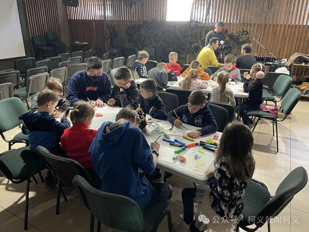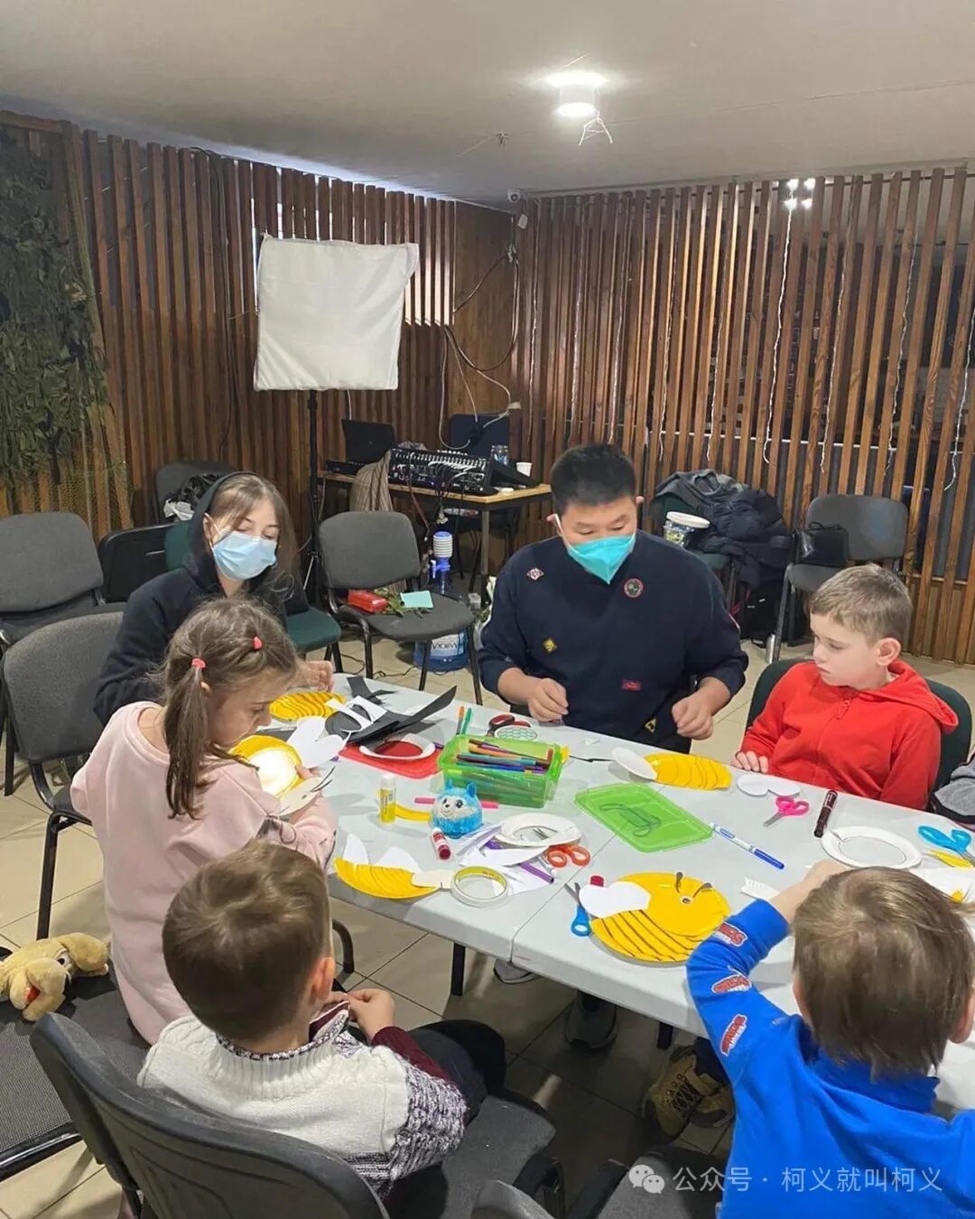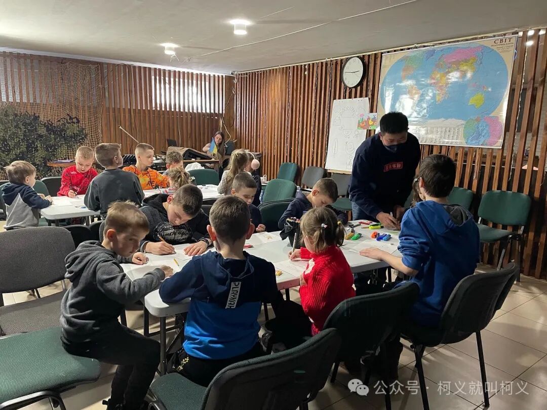 我在国内读大学的时候就参加每年的暑假义工帮助当地留守儿童,汶川地震后作为志愿者也参加了援助活动,而且我一直都在辅导小朋友画画,所以在安置点教小朋友画画的事情对我来说比较简单,我们把场地选择在了安置点的地下室,地下室在多年以前被房东Roman装修过后了变成了一个学习场所,战争开始后因为周边没有防空洞就变成了一个公开的场所——防空洞,按照乌克兰的建筑标准要求每一栋建筑地下都要有防空洞,但是我住的附近没有防空洞,最主要是房子太过于老旧是前苏联时期遗留下来的筒子楼。防空警报每天早中晚不间断的响起,响起来后周边的人都会抱着猫和狗还有小朋友们一起跑到安置点的防空洞来。大家都会等着防空警报结束后再离开,防空警报是响一次意味危险大家必须立即采取安全措施去防空洞或者安全的地方,响第二次意味着警报解除。