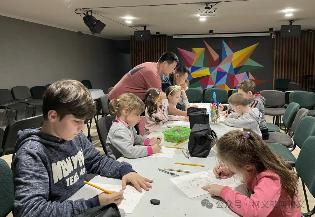 开战第七天乌克兰总统泽连斯基发表讲话号召乌克兰所有的人如果能够工作就选择继续工作,去不了工厂就居家工作,整个国家需要正常的运转,每一个环节都非常重要,超市那时候为了节省用电一半开着灯一半关着,食物也没有以前那么多,干粮没有了,面包架上也是空的,蔬菜更是没有,鸡蛋也跟着涨价而且还比较少,因为乌克兰的鸡蛋产地集中在哈尔科夫那边,养鸡场被炸,我最喜欢的酸奶品牌没有了,小孩留在家里也不去学校,家长压力巨大跑来和Roman的妻子伊莲娜倾诉,询问是否有一些办法可以让孩子们可以适当放松一下,因为大家每天接触的信息都是战争,也就是这个时候伊莲娜问我是否可以帮助大家,教小朋友画画,我答应了,儿童绘画课就这样开了。