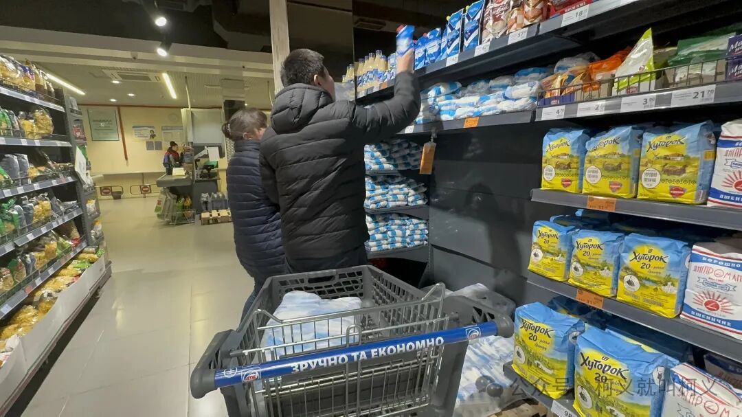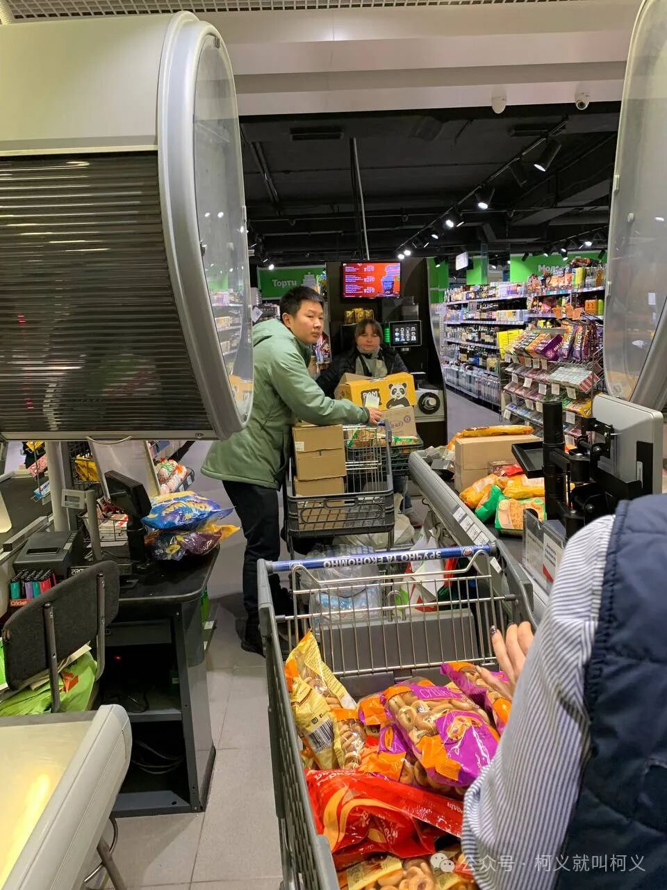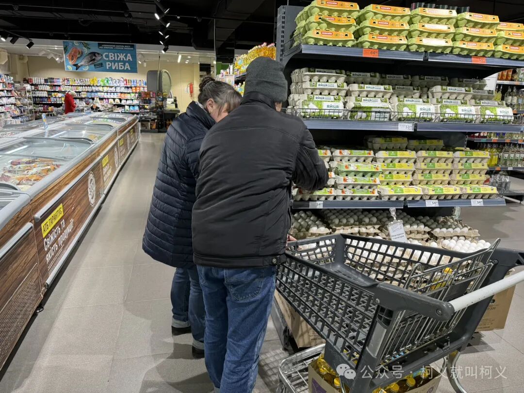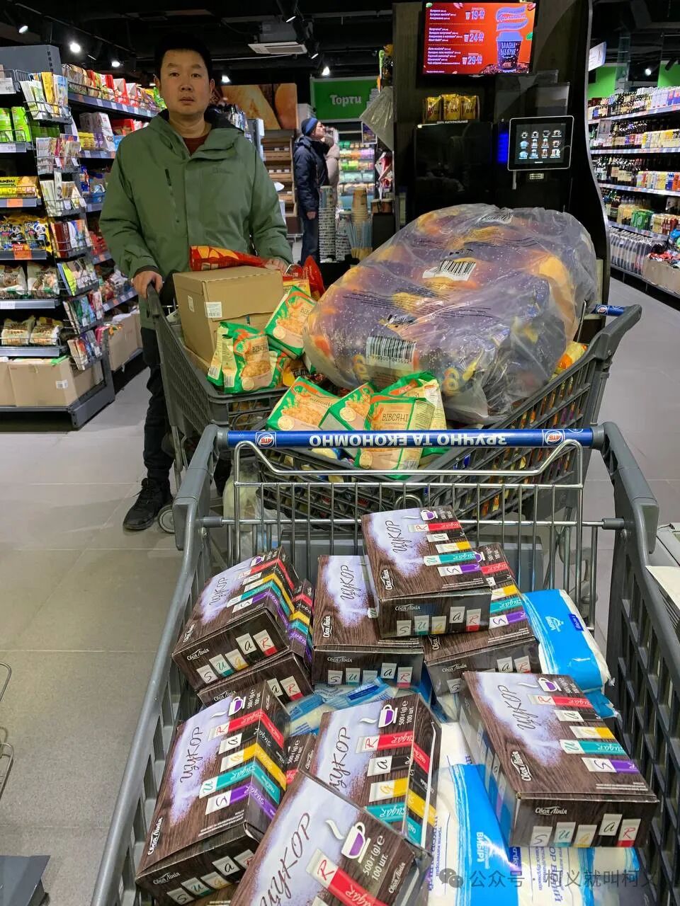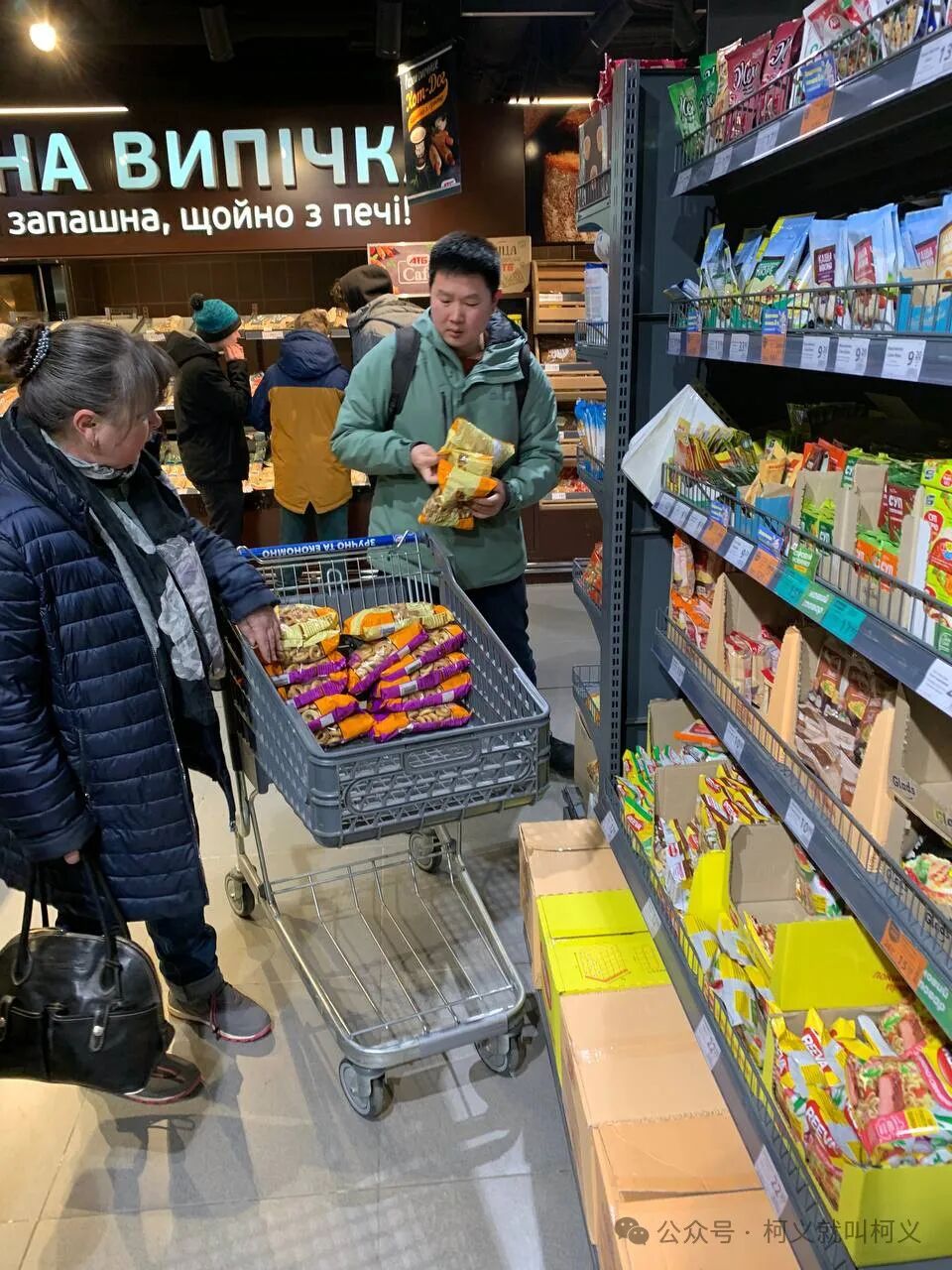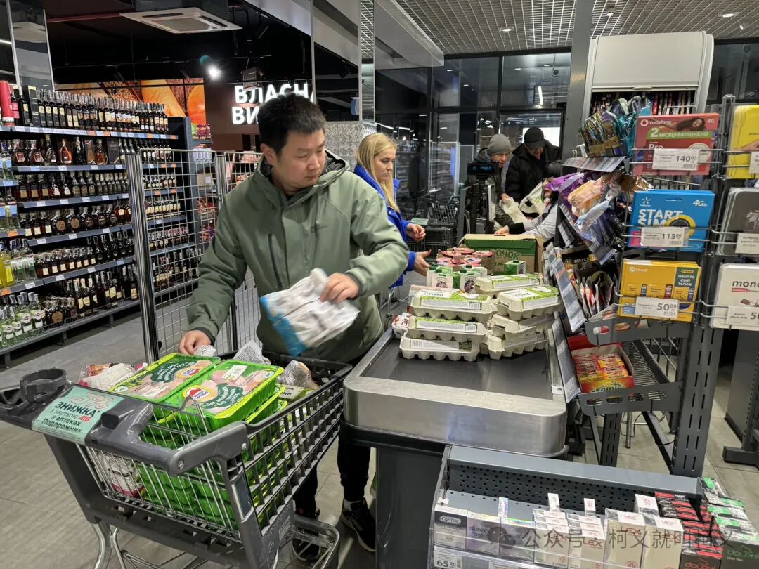 赫尔松的宵禁时间在冬季是晚上8点,现在有一些人开餐厅了,我去年四月份去的时候就三四家餐厅还在营业,现在多了一些,但是大部分到下午5-6点就会关门,超市也会卡着点关门,在所有的超市门前你会看到用档板做成的门,包括加油站和其它门面都会这样,远处看以为没有人进去一看就像是爱丽丝梦游仙境的“兔子洞”完全是另外一番景象,一切都是正常的,这种差异真的太过于梦幻,尤其是在超市,当你跨进超市那一刻,仿佛这个空间与玻璃窗外的世界直接切断了,里面灯光明亮,物品按类划分整齐摆放,一切的食品都齐全,人也多大家都是比较有限的选物品,唯一的区别就是有很多提着冲锋枪的军人,这里是我一辈子见到过最多军人的地方,从一些顾客的身上你可以看到他们确实有经济问题,衣服相对会破旧一些,这些细节还是会提醒自己这里还是在战争区,也许这里就是短暂逃离高压战争氛围的避难所。