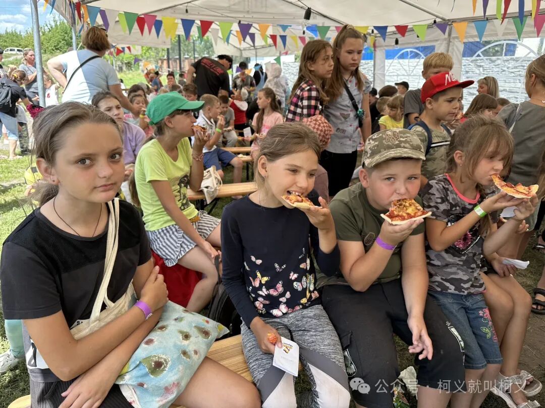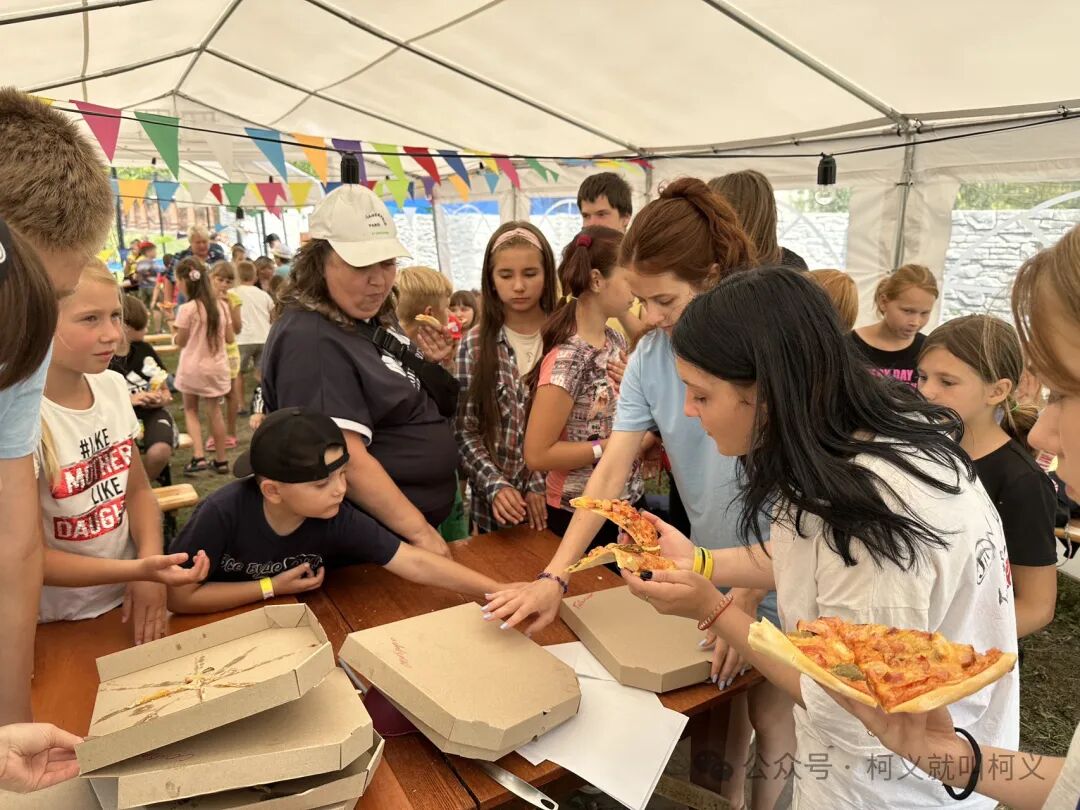 营会是在星期二早上开始的,一直持续到星期天上午,我们给营会的小朋友提供营养早餐,还有午餐都是免费,其中有一个我的朋友为了不让我为难特意在微博上打赏了1000元,打赏是合法的,所以他以这样的方式让我给当地的小朋友们买了pizza,我在视频上说的14个是说错了,一共是24个pizza给小朋友们,当小朋友们听到pizza可以吃的时候眼睛都亮了,他们好多都在说他们好久没有pizza,好久是多久,有可能好多小朋友是在战争前才吃到pizza,有可能大家还会怀疑说都是二十一世纪了,能这么惨吗?这边是乌克兰的东北部战争区,不是乌克兰的中部和西部地区,营会在路边,我每天看到最多的都是驶向战争区的装甲车,坦克,还有军用火车,可想而知这样的地区,情况会是多么的糟糕。