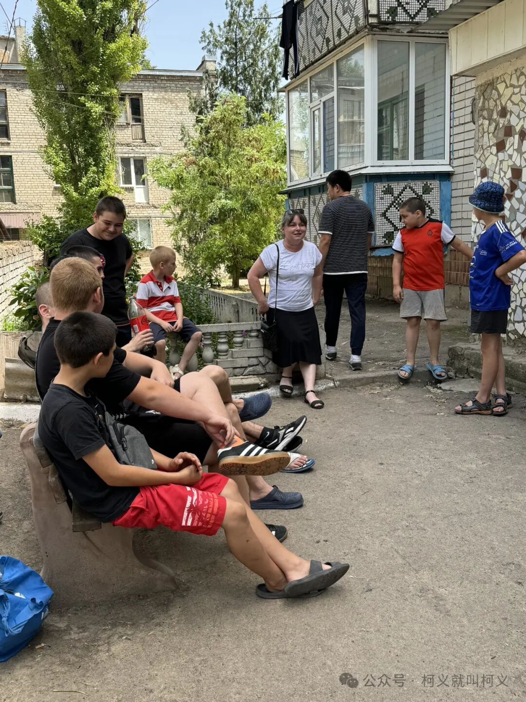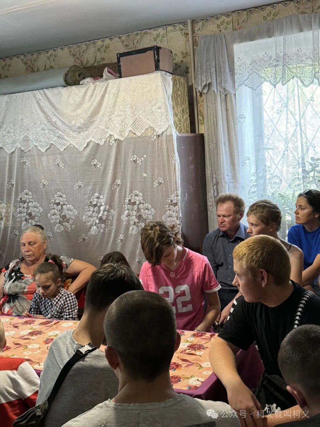 他们邀请我们一起到屋子里进行分享,我的俄语不好,能听懂一些,事实上我一直在学习和说的语言是乌克兰语,但在基辅哈尔科夫敖德萨和赫尔松这些东部地区基本上都说俄语,我在无意识中有时候会乌克兰语混着俄语一起说,对我来说这是非常大的一个问题,也是一个巨大的挑战,我跟着他们进到了一个前苏联的筒子楼,条件很差,楼道也很破旧,这样的房子里面不怎么透风,总会有一种发霉的味道。我们去的是一楼,是那位老奶奶的家,她把她的家提供出来给大家使用,房间很简陋,空间也不够大,大家互相之间挤在一起,因为有新的朋友过来,他们显得特别激动和好奇。尤其是Света介绍我是从中国过来的志愿者后,大家齐刷刷的瞪着眼睛看着我,我一瞬间都不知道怎么回应这些充满着好奇和天真脸庞的孩子们,人总得尴尬几次后就不会再显得那么尴尬了,我只能迎合一下,尴尬的笑着和他们坐在一起。