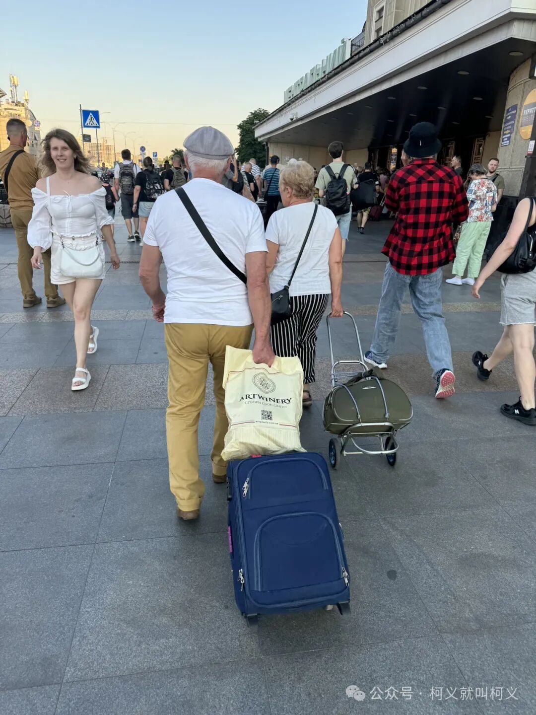 一对夫妻相拥在一起,男的高高瘦瘦的目测有2米,女的此时正在难过不舍的哭着,眼泪不停的从她眼睛里流出,她的神情让人觉得她特别的不安和不舍,新的征兵令开始后更多的乌克兰男性需要去前线替换已经在战场上两年没有休息的士兵,赫尔松又在最前线,这种生死离别的场景不是电影里面可以轻易刻画出来的,我想这位妻子此时担心的就是这一别离就是永远的别离,在战争情况下任何事情都有可能发生,我曾说过:赫尔松是一个生死听天由命的地方,生死一线。此时的她在丈夫的面前显得特别的较小,丈夫最后也不知道该怎么安慰她了,他放下了他的双手,任由妻子在他的怀里哭泣。他们侧面的长途大巴车上已经有人在陆续上车了,这不是场景剧,也不是在拍电影,这是赫尔松汽车站的一个场景,也是我第一次亲眼见到的,在此时此刻看到这样的场面总会感到难过和失落,下午7点的赫尔松市汽车站显得格外的空旷,值班的士兵已经下班了,没有想到一下子出现了很多男性乘客,他们都是乘坐晚上的大巴车去基辅市,我问了一下Mathew车票价格,他告诉我1000格里夫纳-折合人民币大概180元,说实话不算便宜。