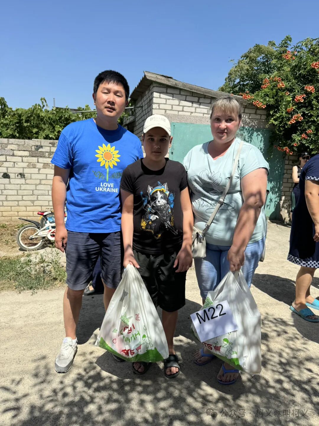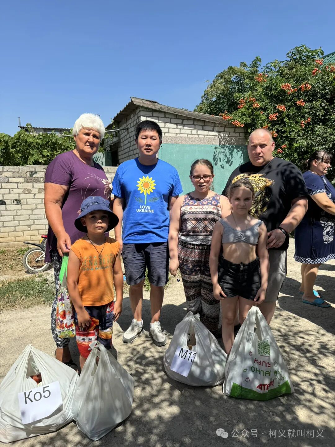 时隔两个月后我们和Света 再次去到了河边的村子,那边的情况还算正常,那边的村民来领取食物袋还是和以前一样,来也匆匆去也匆匆,大家的寒暄总会那么的匆忙,我们还特意去看望了失去胳膊的老人,她的花园还是那么美,此时向日葵已经盛开,盛夏在她的花园里显得格外的明显,我们帮助了那边40个家庭,同时我们还去到了另外一个安置点,一个有着20个孩子的家庭教会和一位充满爱心的老人,我们同样提供了40个食物袋帮助他们,我们计划着下个月还会继续支持帮助他们,再次谢谢Janet和杨阳朋友的帮助!