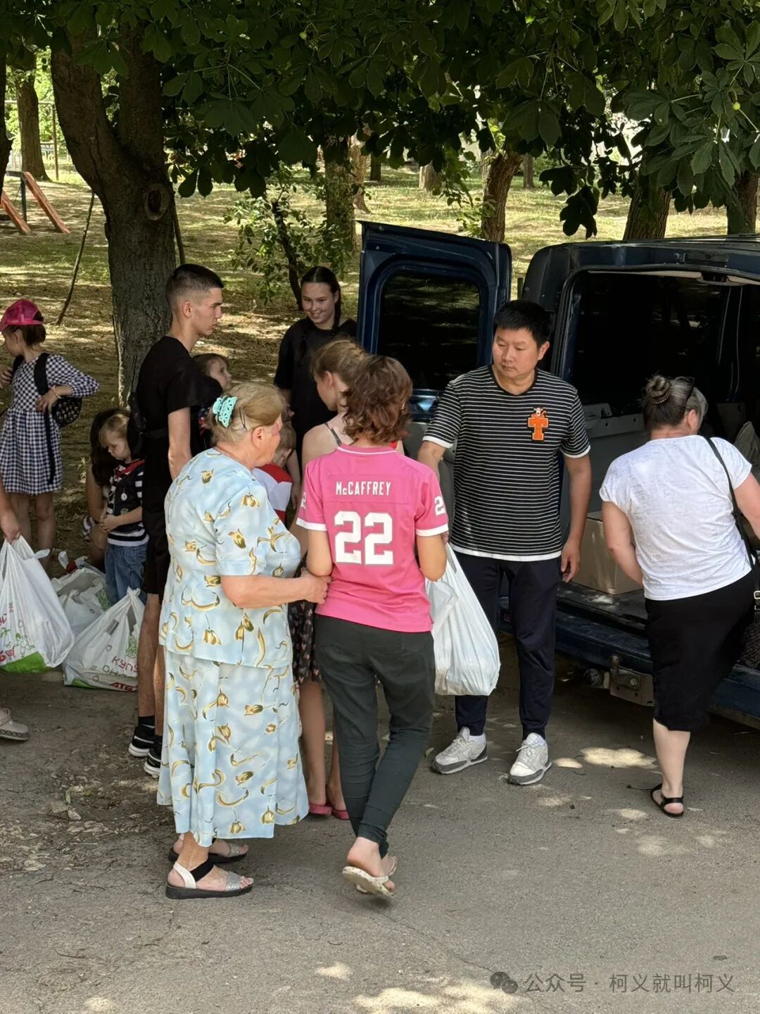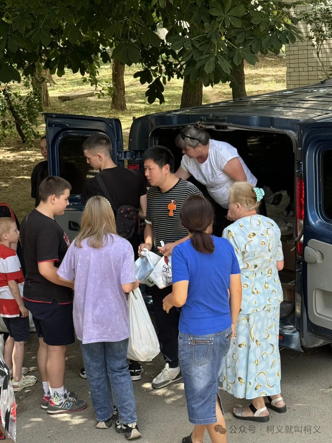 我们发放食物的时候基本上是在下午,而下午是一天中最热的时候,我总想多邀请几个朋友一起去帮忙,但是男生都不敢,尤其是征兵令后,大家更是害怕,我看костя 每次出门都带着证件担心被抓,Света 也提醒我,让我不要再邀请男生一起去发食物袋,大多数的时候是Света,Катя,Абіна 和我还有Света的丈夫,偶尔Dima也会过来帮转一下忙,我们一直在使用那辆绿色的面包车,那是国内网友和海外华人朋友在去年一起捐助给Света 的,当时想捐给机构但是赫尔松的情况太复杂,机构的车可已被部队直接拿走使用,所以我们就被迫换成给Света 了,这辆车来来回回已经帮助了不少人,但是我们知道这是一辆爱心车,装载着来自中国善良朋友们的爱心和祝福,也是一辆传递着美好心愿的车,在赫尔松地区没有车很不方便,尤其是购买食物和发放食物。