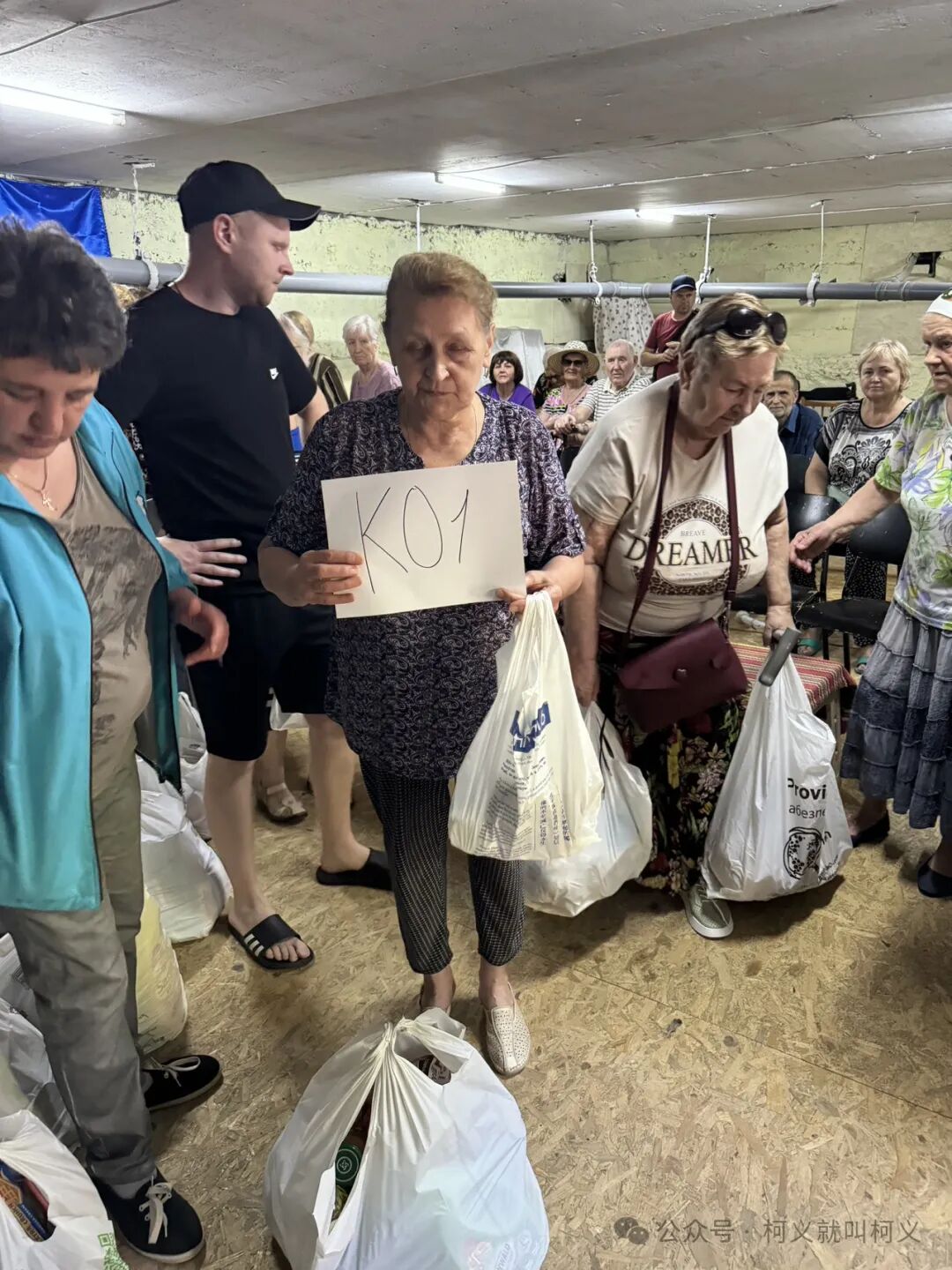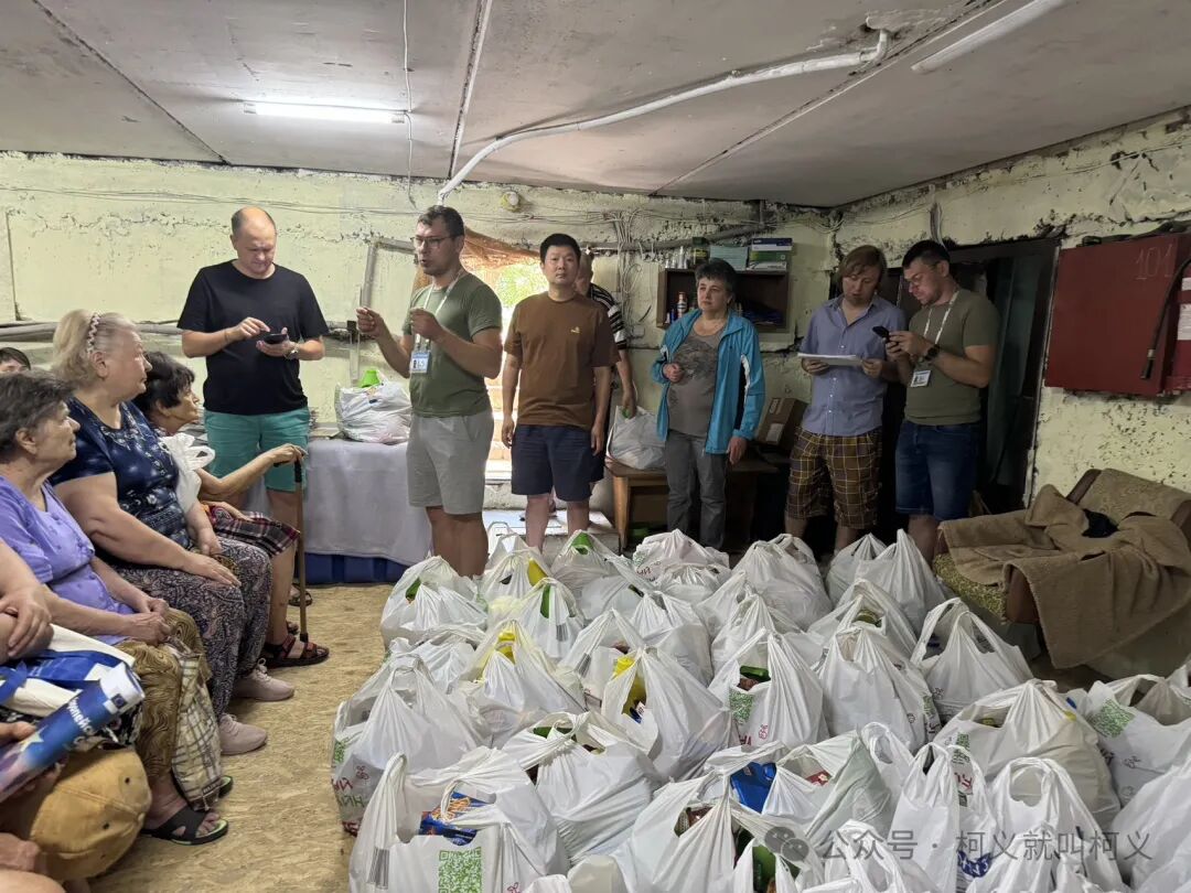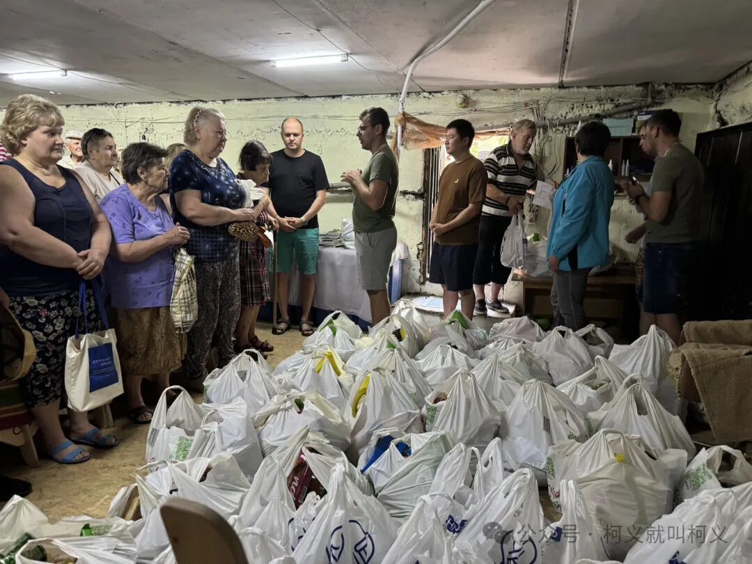 玛利亚和小baby回到家后马克西姆开始变得忙碌起来,我和他们兄弟一起帮助的是当地的一个小区,那个小区里住的基本上是老人,小朋友比较少,每次去到那边总会有一个70岁的老人帮助我们开车托运物资,每每看到他我总会有很多的感动,仿佛看到了自己已经逝世的外公,他也是具有正义感和乐于助人的人,人和人之间的奇妙在于,你会在不同的人身上看到重叠的影子,那是亲人的模样,是自己最尊敬的人的背影,是那种最让人不自觉感动和难忘的情切感。他每次见到我都会给我一个大大的拥抱。每次我们到达小区后在一栋公寓的底层防空洞里都会坐着一群等候着我们老人们,每次Vladimir会给大家介绍捐助物资的情况,告诉大家这些食物袋来自中国善良的老百姓,他们每次听完后都会不停的鼓掌,他们想以这种方式表达他们对中国善良网友们的感觉之情,好几次有数个老人走到我面前表达他们的感谢。还有老人会摸一下我的脸,还会亲一下我的脸颊,我总会在那个时候紧紧咬着自己的嘴唇让自己不要情绪失控,那种被他人关爱和呵护的感觉和家人一样是温暖的,我很容易破防,我担心我哭起来后就很难平静下来,也害怕让大家担忧。