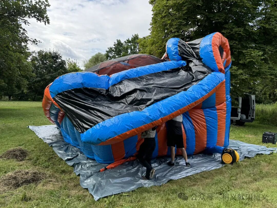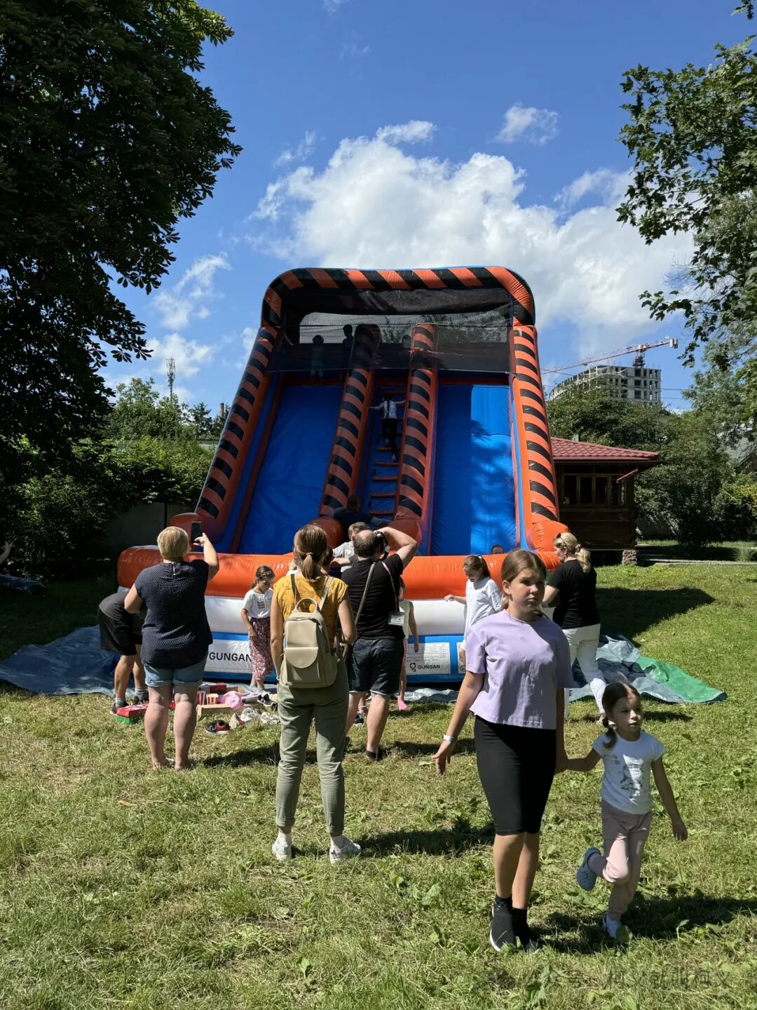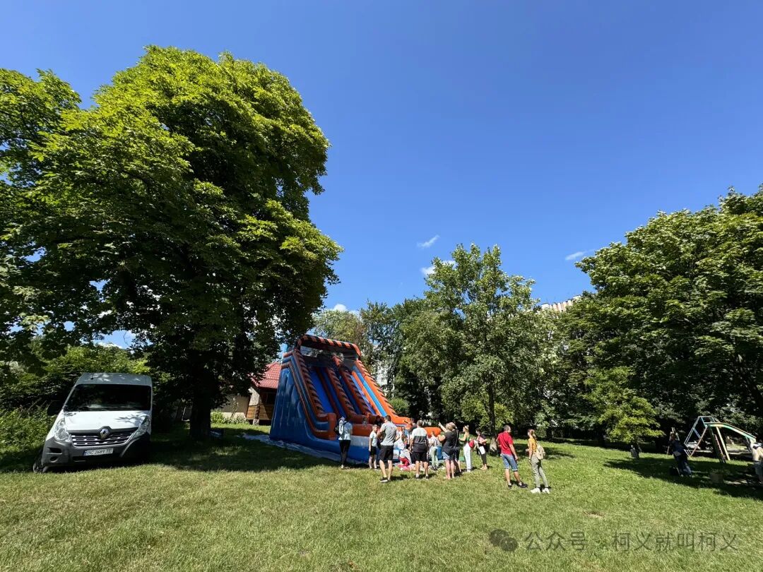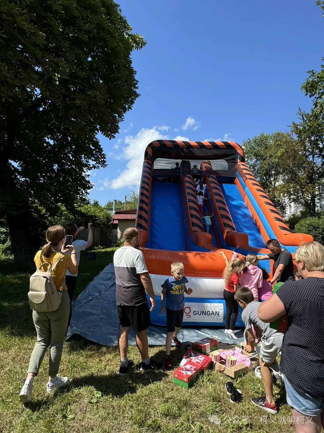 利沃夫安置点的朋友最近特别忙,他们在忙儿童夏令营活动的事情,在七月和八月乌克兰很多城市都会举办儿童营会,这个时间段刚好是暑假,这周日会有20个伊久姆那边的青少年来到利沃夫参加青少年的营会。我刚到安置点(也是教会),他们就已经开始了,Roman在不远处和其他几个青少年在搬运充气帐篷,人手不够,我赶着过去帮忙,今天是星期五,大家都去上班了,也就只有青少年还可以过来帮帮忙,Mark特意开着他的爱玛电动自行车过来看我们,顺便帮一下,我猜测他是送外卖顺路经过的,没过多久他就离开了,去接单干活了。