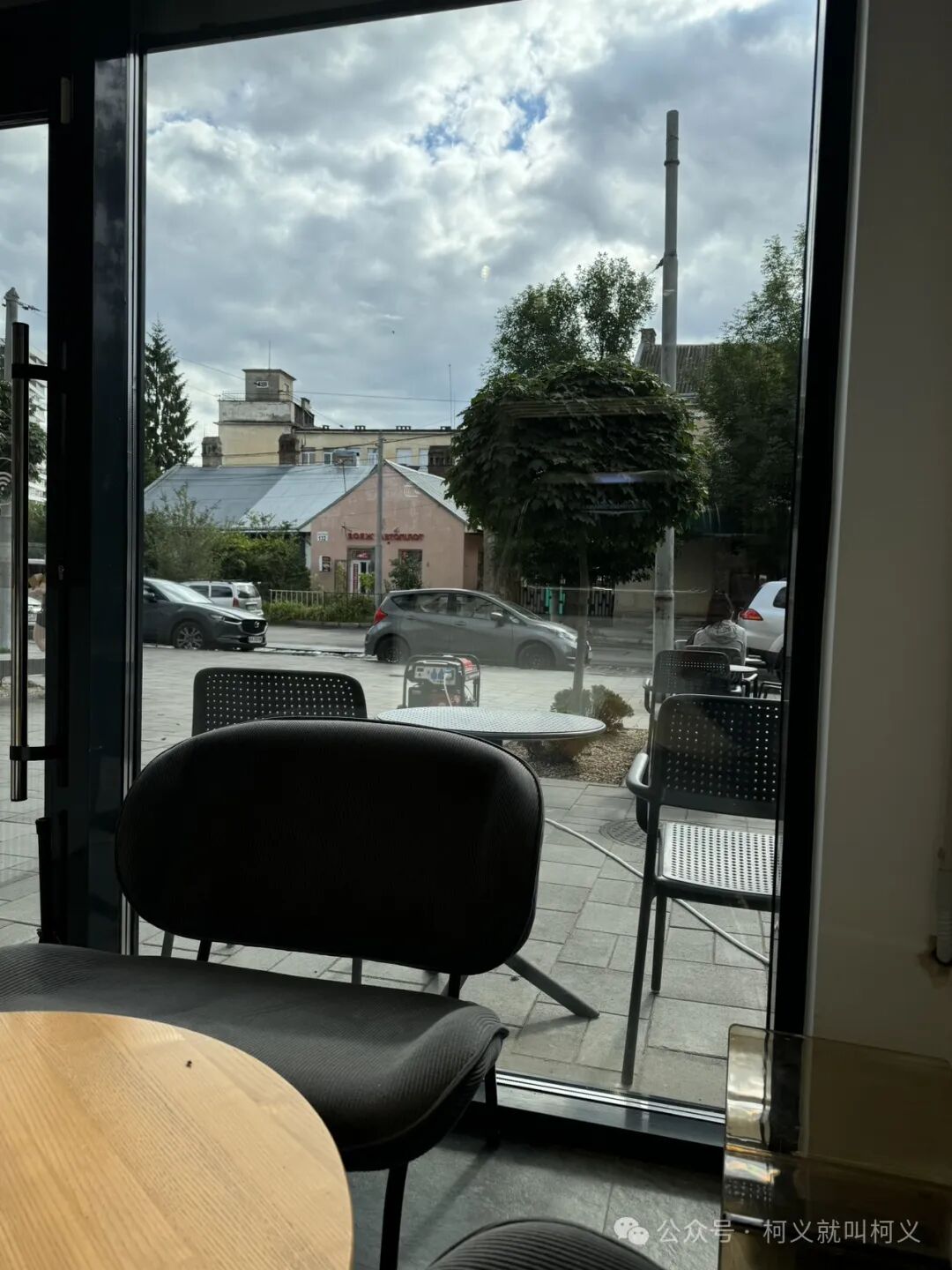 我兜兜转转的转了一圈没有发现发电的咖啡馆,只能原路返回去到了另外一个方向的小区,那边有一家咖啡馆平时在停电的情况下都会发点,当我到那边后惊奇地发现咖啡馆竟然有电,那一个小区没有停电。我毫不迟疑地拿起我的充电线给手机充电,也顺道给自己点了一杯卡布奇洛,在此刻我才有时间稍微的让自己可以放松一下,打开微信后看到一条条消息,然后一一回复大家,开始更新微博和其它社交媒体软件。此时咖啡馆陆续有一些牵着狗的男女进来,这家不大的咖啡馆显得格外的温馨,温暖的阳光☀️透过玻璃窗洒在桌子上,我拿起咖啡☕️慢慢的喝起来,看着窗外风景和行走的人们,把自己的大脑放空,这里呈现的是和赫尔松完全不一样的氛围。我尽量让自己在这段时间里节奏放慢一些,让身体可以稍微恢复一下,再过几天我就要开始离开利沃夫去往东部地区,然后再去赫尔松,漫长的旅行又要开始。
