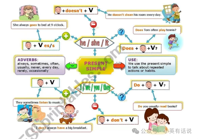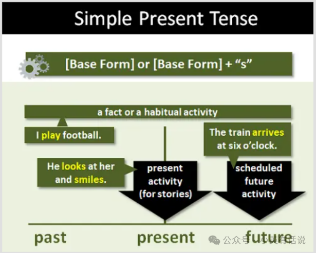 一个时态主要包含三个知识点:什么时候用,怎样的构成,以及动词的变形规则。今天讲一下一般现在时,一般现在时容易构成(form),但很难使用(use),或者说很难准确使用。