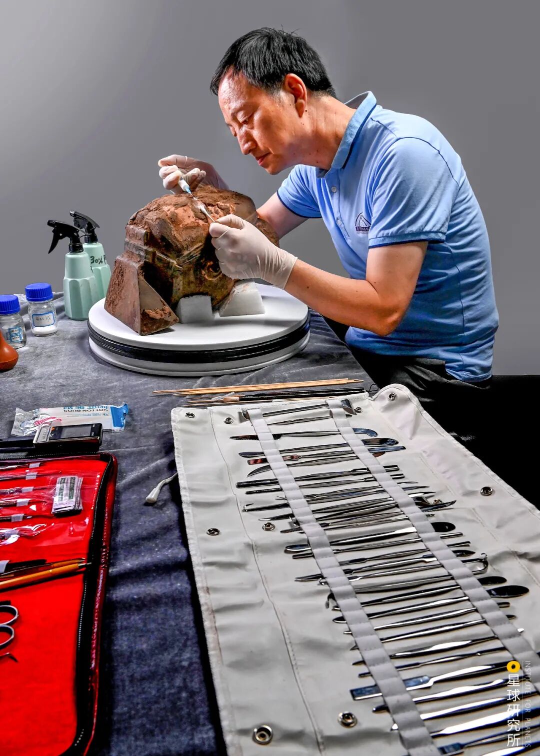 (工作人员正在对刚出土的陶俑进行保护加固,摄影师@张天柱)