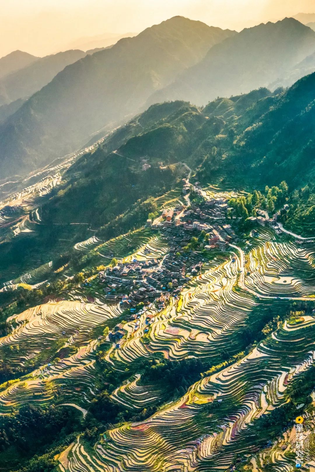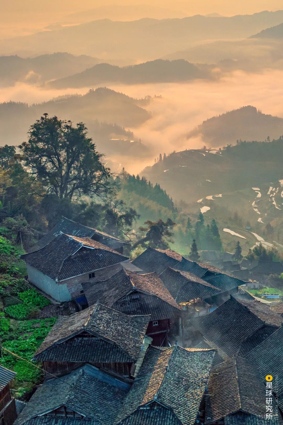 (贵州月亮山上日出时分的岜沙村,摄影师@王伟)