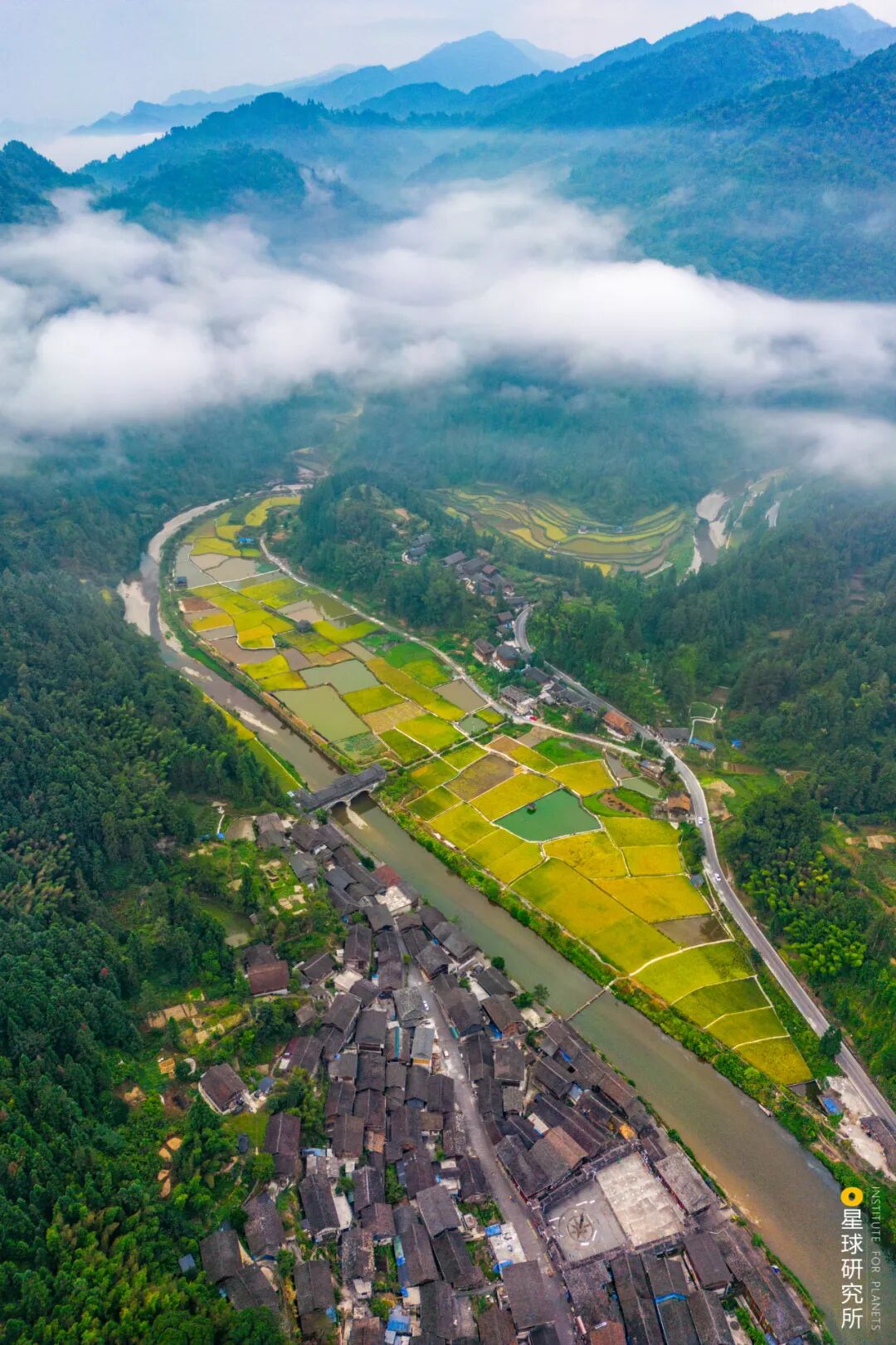 (请横屏观看,贵州从江县岜沙村的中心村和远处的宰戈新寨,摄影师@赵高翔)