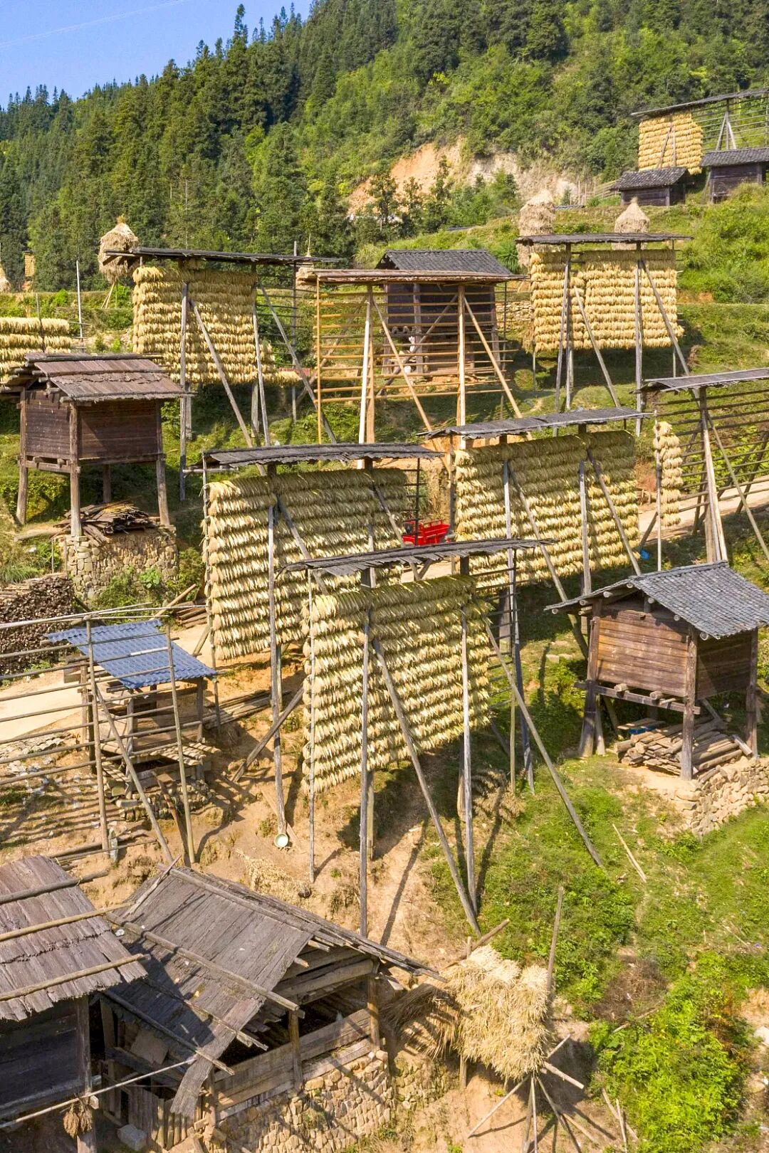 (贵州从江县丙妹镇大歹村晾满糯稻的禾晾,图片来源@视觉中国)
