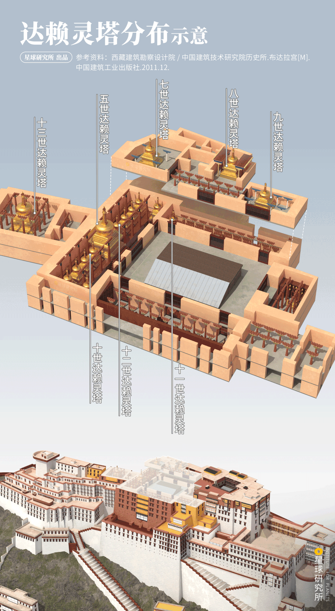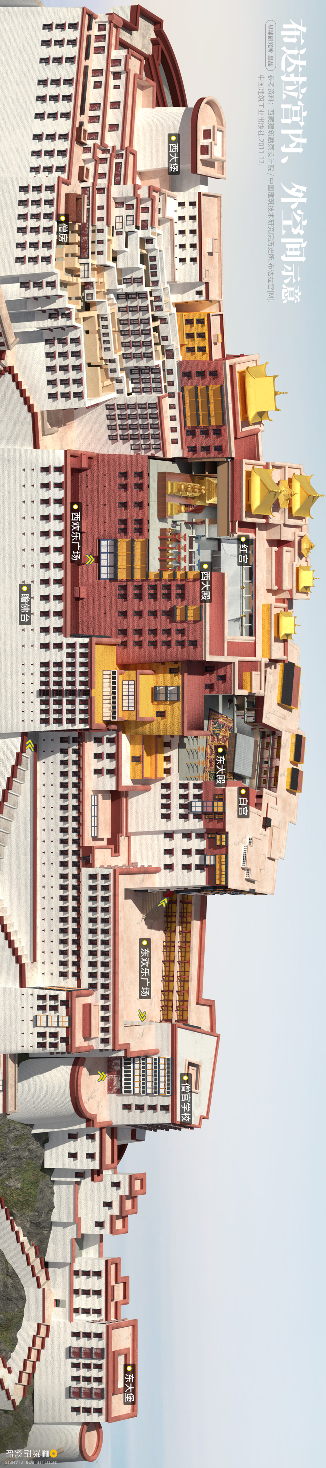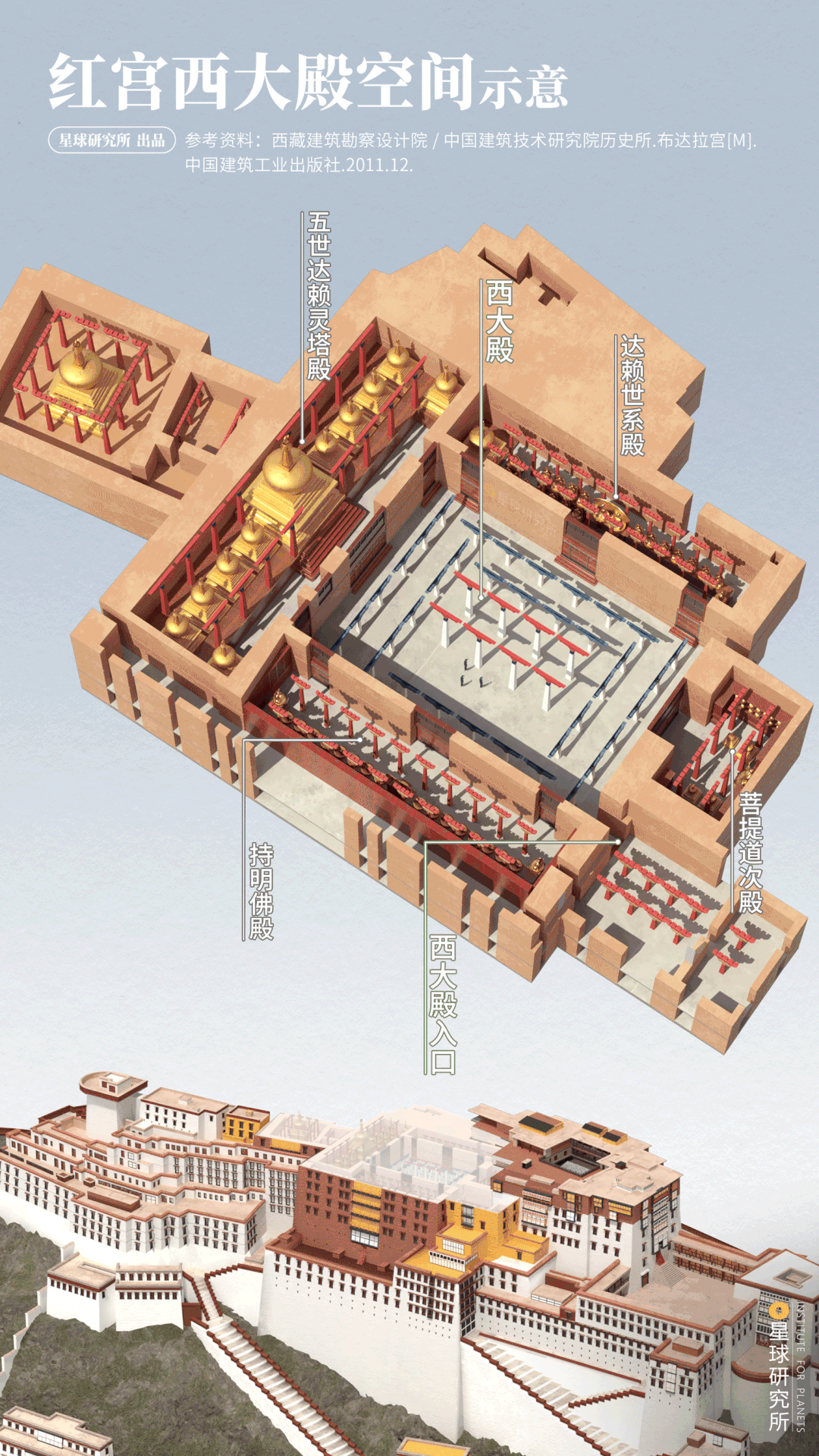 (请横屏观看,布达拉宫内、外空间示意,制图@谢统凯&@李天一&冯艺卓/星球研究所)