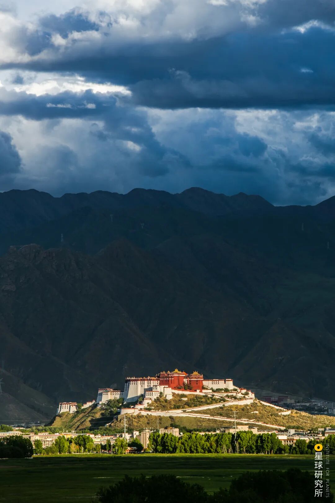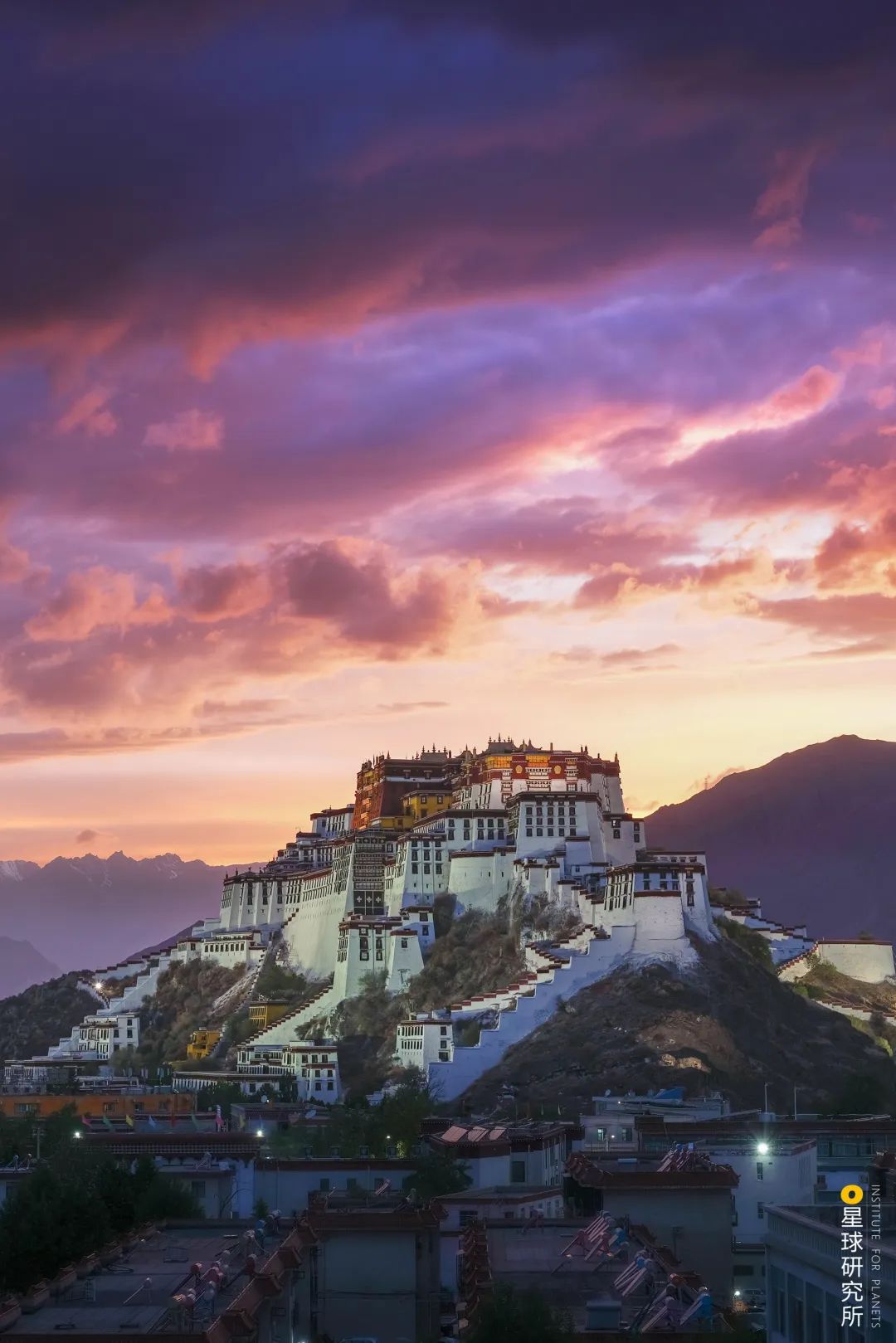 (布达拉宫与它身后步入天际的群山,上文引自阿来《大地的阶梯》,摄影师@陈剑峰)