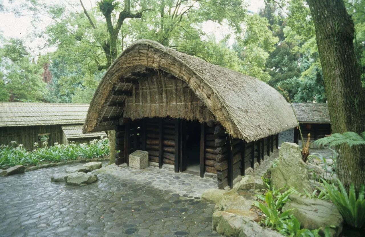 (台湾高山族泰雅族眉原社半筒形屋,图片由李乾朗教授提供)