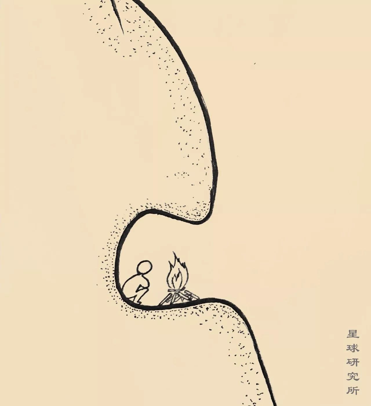 (穴居主要分布于北方寒冷地区,南方湿热地区则是从树上巢居开始的;下图为断崖上的原始窑洞“横穴”示意图,制图@朱亚琳/星球研究所)