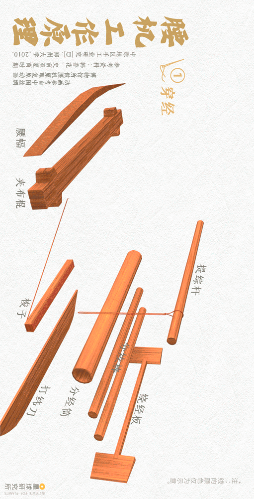 (请横屏观看,腰机原理示意;此种编织方法现今在我国部分少数民族仍有使用,制图@王申雯/星球研究所)