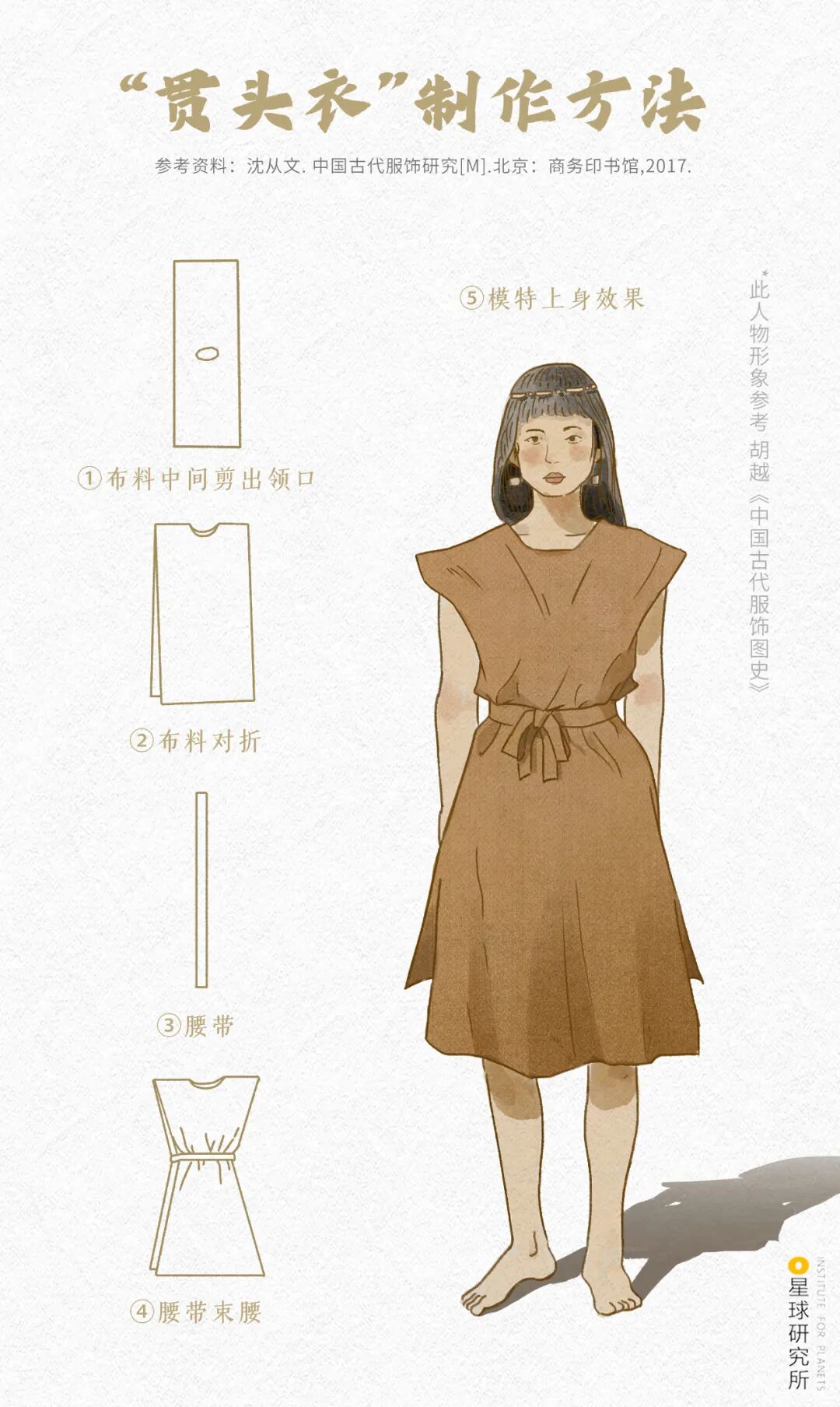 (“贯头衣”制作方法示意,制图@汉青/星球研究所)